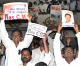 <p>The emotional outpouring of their demand to put pressure on the Congress leadership was made at the end of a condolence meeting for Rajasekhara Reddy organised by the state PCC at its headquarters here in the presence of interim Chief Minister K Rosaiah, PCC President D Srinivas, Union Minister S Jaipal Reddy and a couple of YSR detractors V Hanumant Rao and K Kesava Rao.<br /><br />A majority of the crowd assembled at the meeting waited for the condolence resolution to be adopted and observance of the customary 2-minute silence in memory of the departed to break out into a spontaneous shouting in favour of the late leader's son's ascension to the Chief Minister's post.<br /><br />"We want Jagan," shouted the supporters who carried pictures of Jaganmohan and that of his late father Rajasekhara Reddy.<br /><br />Jaganmohan himself was not present on the occasion. He had just arrived here from Idupulapaya, two days after last rites for his late father.<br /><br />Appeals to Jaganmohan's supporters to be calm since it was supposed to be a silent mourning fell on their deaf ears as the shouting reached a crescendo. <br /><br />"VHR go back" was one of the posters, which was an obvious reference to Rajya Sabha member V Hanumant Rao, who had yesterday criticised the comparison of Jaganmohan to Rajiv Gandhi who had taken over as Prime Minister after Indira Gandhi's assassination.</p>.<p>As the sloganeering continued, the leaders assembled on the stage quietly left the auditorium. Hanumant Rao and Kesava Rao, another Rajya Sabha member</p>.<p>, who had also criticised attempts at "dynastic succession", left along with other leaders.<br /><br />As the situation looked going out of control, K V P Ramachandra Rao, Rajya Sabha member who was adviser of YSR, took the mike to appeal for calm. This also did not calm Jaganmohan's supporters and Ramachandra Rao burst into tears invoking the memory of Rajasekhara Reddy and said his soul would rest in peace only if they remain calm.<br /><br />He said Congress President Sonia Gandhi was fully aware of YSR's popularity with the masses and the support enjoyed by Jaganmohan with YSR supporters and Congress workers.<br /><br />As the restive supporters of Jaganmohan started listening to him, he appealed to them to observe a two-minute silence which they heeded. But the moment it was over, the crowd again resumed slogan shouting at which the meeting dispersed. <br /><br />Yesterday the Congress high command had counselled supporters of Jaganmohan, including ruling party's chief whip in the assembly Mallu Batti Vikramarka, to cancel a meeting of MLAs to demonstrate their demand for making the late leader's son the next Chief Minister.<br /><br />Union Law Minister and Congress party in-charge of Andhra Pradesh M Veerappa Moiley said yesterday that the party would not apply its mind on the succession issue till the mourning period is over.<br /><br />Earlier at the meeting, condolence messages hailing the leadership of Rajasekhara Reddy were read out. The resolution adopted at the meeting also hailed him as a mass leader who had worked tirelessly for the poor through welfare schemes, including those for women and irrigation projects. A message from the Dalai Lama condoling the death was also read out.</p>