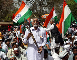 <p> Anna fever gripped Delhi once again Sunday with thousands filling the capital's dharna hotspot at Jantar Mantar to join the social activist in his token protest demanding justice for the “martyred” whistleblowers who had fought corruption. <br /><br /></p>.<p>Tricolours, Anna caps, patriotic songs - the day-long protest had all its usual ingredients with almost 2,000 people assembled at the venue much before Anna Hazare arrived, after his visit to Rajghat. </p>.<p>"I was there at Jantar Mantar last year, I was at the Ramlila ground and I am here as well. I will stick to the anti-corruption movement till whenever needed," said Vinod Pathak, an employee of a private company and a staunch Anna supporter.<br /><br />"We have a saying, try and try till you succeed. This is a long struggle, we can't expect victory against corruption so easily," Pathak told IANS when asked about the effectiveness of the campaign. <br /><br />For freelance photographer, Nishikant Singh, it was an opportunity to participate in Hazare's campaign and capture his idol on film. <br /><br />“This campaign is something that affects us all,” he asserted. Protestors from several states also came to show solidarity with Anna's campaign. <br /><br />Mohammed Alam, a painter from Bihar's Gaya, drew a painting on the theme of anti-corruption itself and was walked about with it held high above his head. <br />"I always paint a new painting during Anna's protests and I made this painting for today's fast. This painting shows how Anna is fighting against the monster of corruption that is trying to devour the democracy," Alam told IANS. <br /><br />However, the protest also attracted some people who didn't agree with Hazare's ideology.<br /><br />Atul Mehta said he came from Patna specially for the protest but to “present the true face of Hazare's movement".<br /><br />“This movement is backed by Rashtriya Swayamsewak Sangh and I cannot stay blind while these people fool the public and try to create an autocracy in the guise of fighting against corruption,” he alleged.<br /><br />“I got to see the true face of this movement when I was attacked by some RSS goons at last year's Jantar Mantar protests for speaking against Anna's methods,” Mehta told IANS.<br /><br />Delhi resident Vijay Narayan Seth claimed: "It is easy to criticise. The methods used by Team Anna won't do much."<br /><br />By lunchtime, several people who were unable to find a good spot inside the venue, had scaled up the walls and soon enough, even the walls were full. </p>