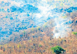 <p>Fire broke out at several areas at the wildlife reserve at B R Hills in the taluk on Sunday. A part of the forest was destroyed due to fire at Hosapodu. <br /><br /></p>.<p>Sources said the fire broke out on Saturday and continued on Sunday.<br /><br />Fire was also noticed at Puranipodi, near Belavatha Dam and Ramakrishna Kuteera. <br /><br />RFO Nagaraj told Deccan Herald that the fire was first noticed on a private land at Yarakanagadde Colony on Saturday evening.<br /><br /> A team of 30 officials were trying to douse the fire.</p>