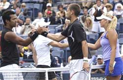 <p>Cara proved a weak link in the Indo-Zimbabwean combination as all she could do was play some feeble shots.<br />She failed to make any impact as not even once she held her serve in the final match, which lasted just 66 minutes.<br /><br />Paes and Cara struggled to find their touch as numerous unforced errors flew from their racquets while their rivals played a fascinating game, especially at the net.<br /><br />Thanks to the brilliance of Paes, the second seeds saved a match point in the eighth game of the second set and also got their first and only break in the match.<br />Carly was serving for the match but Paes played an amazing cross court winner to earn that break.<br />The Indian then held his serve in the game to narrow down the lead to 4-5 but by then it was too late as Travis served out the match in the 10th game.<br />Paes still can return with a title from the US Open if he and Czech Lukas Dlouhy win their men's doubles final against Mahesh Bhupathi and Mark Knowles. <br /><br />The match did not start the way Paes and Cara would have liked as they struggled with serve and shot-making due to windy conditions and were facing two break points in the opening game.<br />The second seeds managed to save both the break points but Cara dropped her serve twice -- third and seventh games -- which handed their rivals a cushion of 5-2 lead.<br />The local wild cards took the first set in just 27 minutes. <br /><br />For the second successive year, Paes was in line for two titles here, having reached the doubles final with Lukas Dlouhy of Czech Republic. In 2008, Paes won the mixed doubles with Black but lost in the men's doubles final.<br /><br />Paes would be now hoping to topple compatriot Mahesh Bhupathi and Mark Knowles of Bahamas in the doubles final to win his career's 10th Grand Slam title.<br />Paes and Black had put up an impressive performance coming into the final, but they lost their touch in the all-important match.<br /><br />Black was all over the place with her shots and also struggled to hold her service games. She was broken thrice in the match. Paes himself was in danger of dropping his serve twice.<br />In fact, Paes was down two break points in the first game, but managed well to hold.<br />Black's serve came under attack and she was broken in the third game and at love in the seventh as Parrot and Gullickson opened up a 5-2 lead.<br /><br />Parrot and Gullickson served strong and did not face a breakpoint in the first set. They dug deep to come out with big shots on crucial points and controlled the net with ease.<br />Paes and Black had a chance when they broke Gullickson in the second set while she was serving for the match in the eighth game. Paes saved the matchpoint with a backhand winner and then reduced the defecit by holding his serve. But Parrott dashed their chances of comeback, serving out the match in the next game. <br /><br />"When we broke them we felt we have a chance of a comeback. But our opponents were too good. They really played very well," said Paes.<br /></p>