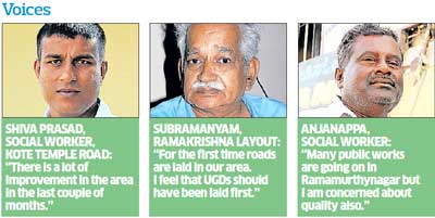 <p>A year after this hugely successful event, Deccan Herald did a reality check in the area, and later invited the MLA for another interaction with residents. The results were revealing. <br /><br />Potholed roads, open drains, dirt, dust and mosquitoes had reduced the various pockets of this constituency to a veritable hell hole. There were hardly any lung spaces to remind people that they lived in a Garden City.<br /><br />A year back, these problems seemed insurmountable. The residents had almost resigned to their fate, having failed to get the official machinery act despite repeated pleas.<br />But today, a change has gripped the area. The constituency harbours hope of a transformation, a vision brought to life by the hum of asphalting machines, the road rollers and drainage cleaners. A majority of the resident association representatives who met at the Deccan Herald office on Saturday acknowledged the change. There is a hope today. <br /><br />Work is underway on many roads and efforts are on to ensure sewerage lines and water supply through public bore-wells. The recce of the area showed the change would be slow. Yet, the residents feel action is finally on, although their complaints are not fully addressed. Saturday's meeting to review the impact of Janaspandana had the residents speak out for works done and delayed, as officials from the BBMP and other agencies listened and responded. Among them was the Palike Executive Engineer for KR Puram, Venugopal. <br /><br />Padmanabhaiah of Nisarga Layout insisted that the underground drains (UGD) be laid on a priority basis. He complained that the police had dug the road there. MLA Reddy assured that the UGDs will be laid soon for which tenders will be called by September 14 or 15. But the work would take at least 15 to 24 months to conclude. <br /><br />Anjanappa of Ramamurthy Nagar agreed that the area now had roads but the quality appeared to be inferior. He also asked for more public borewells in Ambedkar Nagar, reeling under acute water crisis, and cleaning up the lake near Ambedkar School. <br />Nandeesh Reddy assured that steps would be taken to conserve the lake at Ambedkar Nagar, KR Puram Lake, Mahadevapura Lake and other water bodies in the constituency. <br />Mathew from Anugraha Layout highlighted the stray dog menace in his area and other civic problems. The MLA said there was a major encroachment on the storm water drains, which prevented civic agencies from desilting them. He assured that in a week's time, all the storm water drains will be cleared.<br /><br />For Kannan from Vibhuthipura, drains and drinking water were major problems. Sreejith Sankarapillai of Vijnananagar asked the MLA to take measures to protect the Doddanakundi lake. But the MLA said the lake fell in the Mahadevapura constituency. An electric crematorium was another key demand of the constituency residents. <br /><br />DH News Service<br /><br />Janaspandana Impact<br /><br />* Speedy work at KR Puram<br />*People content with the work<br />*Residents insist on quality work<br />*Mahadevapura lake to be surveyed and fenced in week's time<br />*Residents demand electric crematorium<br />*UGDs to be laid in the entire KR Puram constituency in two years<br /><br /></p>.<p>Interview(Nandeesh Reddy, MLA KR Puram Constituency)</p>.<p>How has been your one-and-half year tenure as MLA? Are you content with your performance?<br /><br />It is challenging. I am working day and night to give a facelift to the constituency. The result is quite obvious. KR Puram is no more what it was two years back. I receive overwhelming response from the residents of my constituency. Yet, we have a long way to go. <br /><br />Are the people insisting on quality now?<br /><br />Several developmental works are in progress. I am also keen about the quality and I will not compromise on that.<br /><br />Roads are being laid in many areas where the underground drains (UGDs) are not laid. Won't the new roads be dug sometime later for the UGDs?<br /><br />The condition of road is pathetic in Ramamurthy Nagar and there was urgent need for good roads. The UGD laying process will start from December and would complete after two-and-half years. Till then, we cannot make people suffer due to the muddy roads.<br /><br />Many storm water drains here are encroached upon.. <br /><br />If any storm water drain is encroached then it will be razed. We will not tolerate any encroachment on government land, meant for public utility. </p>