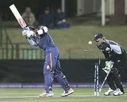 <p>The Black Caps first ran up a total of 301 for nine and then shot the Indians out for 198 last night to claim a morale-boosting win ahead of the eight-nation tournament starting on Tuesday.<br /><br />India's bowling was pathetic at best as runs leaked from everyone except leg-spinner Amit Mishra, who returned figures of one for 29, and Yusuf Pathan (3/46). In batting, only Rahul Dravid (37) was engaging while the rest failed to impress.<br /><br />Indians, ironically, didn't start the chase badly under lights as 58 runs accrued from the openers. Dravid, in particular, looked in scintillating touch, hammering Shane Bond for four fours in one over, all distinct and different from each other.<br /><br />Dravid first hooked and then drove Bond imperiously through the covers. He then dabbed a delivery to third man fence and delicately glanced past fine leg boundary.<br /><br />But once the experienced batsman departed, playing all over a brilliant delivery from off-spinner Jeetan Patel, Indians showed little stomach for fight. Suresh Raina (31) delighted for a while but once he was run-out, Indians folded up quickly. <br /><br />New Zealand showed they meant business and the four frontline bowlers were kept in hunt till the back of Indian batting was broken. With a score of 130 for 7 on the board, the writing was clearly on the wall for the Indians.<br /><br />Earlier, the Kiwis finally seemed to have something to crow about their troublesome top order as meaty partnerships came up to bring on a total of 301 for 9.<br /><br />Jesse Ryder (57), Martin Guptill (63) and Neil Broom (66) were at the forefront of New Zealand's frontal assault on Indian bowling. Ryder, the left-handed opener, spanked new-ball bowler Praveen Kumar, picking up six of the eight fours hit against the right-arm swing bowler.<br /><br />Ryder also smacked Ishant Sharma for a massive six as he clobbered 57 runs from 48 balls with 10 fours and a six. Ryder got good support from the other end as Brendon McCullum (15 off 17 balls) and Guptill (63 off 79 balls) also lay about smashing the bowling, bringing up New Zealand's 150 in the 28th over.<br /><br />India's spin duo of Mishra and Yousuf applied brakes in the middle overs but so poor were the others that it hardly arrested the Kiwis' momentum. Broom provided a bigger thrust in the closing overs, hitting 66 from 46 balls with five fours and four sixes. The 25-year-old put Indians on the mat with his whistling innings.<br /><br />In RP Singh's eighth over, the penultimate over of the innings, he clobbered 25 runs including three sixes and a four.</p>