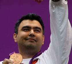<p>Beijing Games gold medallist Abhinav Bindra today crashed out of the 10m air rifle event at the London Olympics with a dismal display in the qualifying rounds, but compatriot Gagan Narang kept alive India's hopes by advancing to the medal round here.<br /><br />Bindra, who scripted history four years ago by becoming the country's first-ever individual gold medallist in the Olympics, shot 594 out of 600 to finish a shocking 16th out of 47 competitors and lost the golden chance of becoming the world's first shooter to win two successive gold medals at the mega event.<br /><br />However, Narang kept India in the hunt by finishing third with 598, a point behind world number 1 Niccolo Campriani of Italy and Romania's Moldoveanu Alin George who both shot an Olympic record-equalling 599 to stand first and second in the qualifying round at the Royal Artillery Barracks.</p>.<p>Bindra started with two 99s in the first two series before coming back strongly by getting two perfect 10s for consecutive 100s in the third and fourth rounds.<br />The two 100s gave Bindra the lift and the belief he badly needed after dropping a point each in the first two sets.<br /><br />However, a 99 in the fifth and an even poorer outing in the last series where he could score just 97, dashed Bindra's chances of earning a berth in the eight-man finals to be held later today.<br /><br />This was the only event the 29-year-old Bindra from Chandigarh was taking part in, thereby cutting short his campaign in the ongoing Games.<br /><br />Narang, on the other hand, was bang on target from the beginning, scoring two successive 100s, but a 98 in the third series somewhat let him down.<br /><br />The 29-year-old Hyderabadi, however kept his cool and fought his way back into the reckoning for the medal round with a perfect 100 in the fourth series and then clinched the spot as the third best performer by notching two more 100s in his last two rounds.<br /><br />Narang, a two-time world record setter, had won four gold medals in the 2010 Delhi Commonwealth Games and followed that up with two two silver in the Guangzhou Asian Games a month later.<br /><br />He had also won four yellow metals at the 2006 Commonwealth Games in Melbourne. </p>