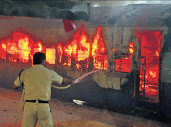 <p>The authorities are yet to establish the cause of the fire that ravaged a bogie of the Gulbarga-Solapur passenger train stationed at the platform number 3 of the railway station here on Tuesday. The accident charred two people to death, and inflicted four others with burns.<br /><br /></p>.<p>Surviving passengers told police that they had had heard a loud explosion which was followed by thick smoke and fire.<br /><br />One passenger, Naseem Banu, who was going to Solapur for medical treatment, said that he saw a saw a trickle of fuel just before the explossion. “I was eating lunch and suddenly I saw a trickle of kerosene oil below my seat. Before I could realise what was happening, I heard a huge explosion and rushed out of the coach,” he said.<br /><br />Another passenger, Gopal Guttedar said that about five boys were moving in the coach suspiciously, closing all the windows and doors of the coach — just moments before the explosion. <br /><br />When the fire engulfed the entire coach. Guttedar threw his grandson out, to safety and pushed his wife through the window before following her out. Fortunately, the window did not have a grill.<br /><br />Suresh, a passenger bound for Barutgi in Maharashatra said that, “I was reading a newspaper, when I suddenly I heard an explosion followed by smoke and fire. I pushed two children out from the door before I got out myself.’’ <br /><br />He said some railway policemen made vain attempts to put out the fire using two fire extinguishers in the bogey, but proved unable to operate the equipment.<br /><br /></p>