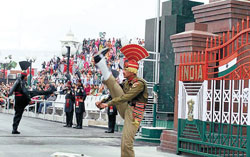 <p>BSF personnel are suffering from knee pain, bad back and throbbing sore feet due to the heavy stomping jerks at the Retreat ceremony<br /><br /></p>.<p>If it's not a robust physique, a built-in aggression and at least six feet from head to toe, chances are that even the best of the Border Security Force (BSF) men may not qualify. That’s perhaps the quintessential criteria when it comes to the everyday evening Retreat ceremony at the international Attari-Wagha Punjab border with Pakistan.<br /><br />On the other side of the iron gates just a few feet away, the Pakistani Rangers have no reason to discount this benchmark. In fact, other than the nationality and the black uniforms they don, much of the posturing looks like a photo copy. It's hard to insulate yourself from the abrupt spurt of patriotism that almost all visitors experience rushing through their capillaries as stout BSF men launch themselves into the ceremony stomping their feet hard on the metalled road for minutes at a stretch.<br /><br />Now it is beginning to have its effect. The heavy stomps are leading to jerks in the joints, leaving BSF soldiers with knee pain, bad back and throbbing sore feet. So, the BSF has now decided to lay wooden flooring all over the stretch that would cushion the impact. Of course, the stomping sound on a wooden floor will give the Indian side some solace scoring more decibel points over the Pakistani Rangers.<br /><br />BSF top officials said a proposal is underway for laying wooden flooring that would be covered with black rubber to give it a road-like look. Concrete floor at Hussainiwala in Punjab's Ferozepur district, which too hosts a similar ceremony, will also be replaced as a part of the plan. <br /><br />For those who have seen the ceremony live at the Attari-Wagha border, or even watched the Retreat ceremony sitting cosy in their living rooms over popcorn, know well that the everyday evening event is anything but a retreat, at least going by the posturing. But the least you can expect from the ceremonial head-high kicks, popped out eyes and robotic manoeuvrings of Indian soldiers is a full-on tourist charm.<br /><br />And the BSF perhaps wants every popped-out gazing eye to meet your eye. That’s why giant LCD screens are being installed at the border to attract visitors. The everyday heavy rush is something that one need not bother anymore. The giant TV screens will not let you miss one bit of stomping that often gets lost somewhere in the rant of heavy sloganeering on both sides of the border. <br /><br />On an average, about 12,000 visitors descend at the venue every day to watch the impeccable ceremony. But the venue has just a seating capacity of about 5,000 people. Officials said in the next two months, work is likely to begin on building multiple stands that will eventually be able to accommodate at least twice the number of visitors from its present day capacity. The plan will also remove bottlenecks and delays in visitor intake at the time of the ceremony. Often visitors have to rub shoulders in a packed house leaving a bitter taste to an impressive ceremony.<br /><br />The BSF has also permitted the participation of women BSF personnel in the ceremony. Two women personnel start the ceremony in a similar fashion before handing the charge to their taller colleagues. The BSF says the participation of women in various tasks reflects upon the resolve of the force towards promoting an even better and effective culture of deliverance. Women BSF personnel have already been patrolling vast stretches of the crucial Indo-Pak border.<br /><br />A Friendship Park on both sides of the Attari-Wagah border to facilitate bilateral trade and commerce between the two nations too is being thought of. PHD Chamber of Commerce and Industry Punjab Committee chairman Rajiv Bali, who returned from Pakistan recently, said that the proposed park would help in conducting meetings among the businessmen of the two countries at the border. <br /><br />A special one-day permit could be issued to interested businessmen by the government authorities on the two sides to address essential concern and take the business forward. <br /> Meeting rooms for traders and industrialists of both nations, auditoriums for conferences and seminars, a stadium and shopping malls in near-vicinity too are planned.<br />Bilateral trade<br /><br />Even as Pakistan is yet to accord the Most Favoured Nation (MNF) status to India for boosting trade ties between the two countries, trade between India and Pakistan through the land route via the Attari-Wagha border has been witnessing a steady increase after the setting up of the integrated checkpost (ICP) on the border early this year. Export and import of certain new items, including newsprint and yarn, have already started. After the recent visit of Punjab Deputy Chief Minister Sukhbir Singh Badal to Pakistan, there are indications that suggest a consensus to dismantle the “negative list” by December, 2012. This will further boost trade. At present, India and Pakistan allow trade of only 137 items through the land route, including the Attari border in Amritsar. India has set up a Rs 150-crore state-of-the-art ICP at the border to handle greater passenger and cargo traffic on its side at Attari.<br /><br />Sukhbir Badal has also demanded a full port status for the Attari border and sought approval from the External Affairs Ministry for allowing import of 6,000 items. These items are currently being traded between the sea ports at Mumbai and Karachi.<br /><br /></p>