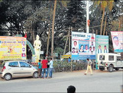 <p>Density of vehicles which has risen after the opening of new bus stand and several other woes is dogging NR Circle, which has made it inevitable to highlight the problems once again.<br /><br /></p>.<p>Since the past few days, along with the rising vehicles and incomplete road works, resulting in potholes has turned the whole stretch into a dangerous zone. <br /><br />One side of the road is occupied by vehicles, both two-wheelers and four-wheelers parked haphazardly even though a board installed says ‘No Parking’. <br /><br />Even the buses belonging to transport corporation is parked here flouting rules and hundreds of people waiting to board their buses.<br /><br />As if all these problems is not sufficient to the public, police have introduced a new trend. The mangled remains of the vehicles involved in accidents anywhere in the city are parked on the spot for public display. <br /><br />The management of Mysore Bank had constructed a small park in their premises for the benefit of their customers and had installed the statue of Sir M Visvesvaraya. <br /><br />Now these out of shape vehicles is not only causing an eyesore, but also blocking the view of the statue.<br /><br />Vehicle remains<br /><br />These vehicles parked near the police station at the circle is also gathering dust. All these have increased the problems of the citizens who complain that the whole circle resembles a war zone.<br /><br />Moreover, the flex culture has turned out to be a big curse for the circle, as there are at least 50 to 60 flex boards and advertisement boards in the circle. Only the CMC can identify how many of them have been installed without their permission.<br /><br />Hemavathy statue<br /><br />Some of the members had stressed in a meeting held a couple of months ago that circle with Hemavathy statue should not be marred and hence no permission should be given to install flexes at the place at any circumstances. <br /><br />The president and the other members agreed in unison and had decided to make it a flex free zone. This had appeared in all the newspapers. <br /><br />But this decision could not be enforced as decided as the 20 feet tall flex boards adorning the photographs of the president and the members who opposed the same, is the proof of this.</p>