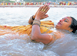 <p>Clad in yellow sarees with vermilion mark from their forehead to their noses, women congregated in the banks of Ganga in the wee hours of the morning, taking a holy dip with ‘diyas’ (earthen lamps) in their hands as a mark of respect to Sun god. <br /><br />A similar ritual was performed on Saturday evening, with relatives joining them. <br />As Ganga started to flow at dangerously higher levels in the last few days, authorities declared 49 out of 97 ghats in Patna unsafe. This prompted many to set up make-shift ponds on terrace at home and perform the ritual. <br /><br />Leader of the opposition and former chief minister Rabri Devi performed Chhath at a specially-constructed, 20 ft long-50 ft wide-swimming pool at her residence in 10, Circular Road. The pool was decorated with flowers and light for the occasion. <br />Chief Minister Nitish Kumar was joined by his sister and other relatives at his official residence -1, Aney Marg- to offer ‘arghya’. <br /><br />The chief minister later offered ‘prasad’ personally to the visitors. LJP President Ram Vilas Paswan joined his ‘samdhin’ (daughter’s mother-in-law) and Congress MLA Jyoti to celebrate Chhath in Patna. Accompanied by his wife Reena Paswan, he also visited Rabri’s residence to receive ‘prasad’. <br /><br />Facilities at various jails were made to allow inmates to offer ‘arghya’ on the occasion. Seventy-five women and 60 men from Khudi Ram Bose Memorial Central Jail in Muzaffarpur celebrated Chhath, while authorities at Hajipur Jail had constructed concrete ponds inside the premises separately for its 60 male and female prisoners to offer arghya. <br /><br /></p>
