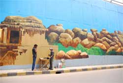 <table><tbody><tr><td><a href="../photo.php?id=2250&flag=1"></a></td></tr><tr><td>BBMP has recently started beautification of the grade-separators across several locations in Bengaluru. One such location is Mekhri Circle, where this work is on full swing. Our reader Ambika N Kuloor has captured some of the paintings on the camera.<br /></td></tr></tbody></table>