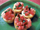 <p> <br />Bruschetta<br /><br /></p>.<p>Ingredients<br /><br /> 1/2 kg ripe juicy tomatoes <br /><br /> 1 baguette French bread or similar Italian bread sliced diagonally<br /><br /> Garlic clove minced<br /><br /> Fresh oregano or basil leaves<br /><br /> Salt and pepper<br /><br /> Olive oil<br /><br />Blanch tomatoes by plunging them first into boiling water for ten seconds and then into cold water. Peel the skin, scoop out seeds and chop finely. Brush bread lightly with olive oil and place over hot grill until golden on each side (The grilling of the bread prevents it from turning soggy once the toppings are placed). Put tomatoes, garlic and oregano or basil in a bowl. Season with salt and pepper. Add olive oil oil and mix. Spoon tomato mixture over each bread slice just before serving. Use variations like finely chopped and sauteed mushrooms, mixed vegetables, ham or cheese. The toppings can be prepared in <br />advance and stored in the fringe.<br /><br />Tomato Gazpacho <br />(A cold soup)<br /><br />Gazpacho is cool, refreshing and flavourful start to a meal on a hot summer day. It can be eaten from a soup bowl, or drunk from a glass. Either way, it is tasty, satisfying and very healthy, since it is made from nothing but fresh vegetables and a bit of olive oil and bread.<br /><br />Ingredients<br /><br /> I kg ripe tomatoes, peeled, seeded, coarsely chopped<br /><br /> 2 slices of white bread, crust removed<br /><br /> 2 cucumbers, peeled, seeded, coarsely chopped<br /><br /> 1 small red onion, coarsely chopped<br /><br /> 3 cloves of garlic, minced<br /><br /> 2 green bell peppers (or any sweet green pepper)<br /><br /> 6 tablespoons olive oil<br /><br /> Salt to taste.<br /><br /> A cup orange juice or tomato juice will add to the flavour.<br /><br /> For garnish — finely chopped a teaspoon each of cucumber and green pepper. 3-4 croutons <br />(optional)<br /><br />Preparation<br /><br />Marinate the above ingredients with the seasoning in the fringe overnight with a drizzle of olive oil. Place in a blender and puree until the mixture is smooth.<br /><br />Once completely blended, pour into a large non-metallic bowl. Add the remaining oil salt and pepper to taste. Mix well, cover and refrigerate for several hours.<br /><br />Garnish with the chopped vegetables and croutons, if desired. Serve the gazpacho chilled( in pre -chilled glasses preferably).<br /><br />Chocolate Walnut Brownies<br /><br />Brownies should ideally have a dry cracked crust, a wonderfully moist texture, and a rich deep chocolate flavour. The secret is in the gentle mixing of the ingredients, the right proportions and correct</p>.<p> baking time.<br /><br />Ingredients<br /><br /> 300 gms cooking chocolate chopped.<br /><br /> 300 gms unsalted butter.<br /><br /> 200 gms icing sugar<br /><br /> 4 eggs <br /><br /> 180 gms all-purpose flour <br /><br /> 1 cup walnuts<br /><br />Preparation<br /><br />Preheat oven to 180 degrees C. Melt the chocolate and butter in a large stainless steel bowl placed over a saucepan of simmering water. Remove from heat and stir in the sugar. <br /><br /> Next, whisk in the eggs, one at a time, beating well after each addition. Finally, stir in the flour, a pinch of salt and walnuts.<br /><br />Pour into a prepared mould preferably a greased loaf tin and bake for about 20-30 minutes, or until a toothpick inserted in the centre comes out with a little batter and a few moist clumps clinging to it. <br /><br /> Do not overbake. Remove from oven and let it cool on a wire rack. Serve at room temperature or chilled. Brownies also freeze very well. One can add zest of oranges, istachios or other nuts for a variation in flavour.</p>