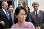 <p>Assistant Secretary of State for East Asian and Pacific Affairs Kurt Campbell and his deputy Scot Marciel arrived in Myanmar yesterday to push forward the Obama administration's revised policy on Myanmar.<br />Nobel Laureate Suu Kyi was allowed a rare break from detention when she appeared with Campbell before the media at the US official's luxury hotel in the former capital Yangon, an AFP reporter saw.<br />Dressed in maroon traditional dress, the 64-year-old opposition leader smiled but said nothing to waiting reporters as she headed into the meeting in a hotel room.<br /><br />Suu Kyi had her house arrest extended by another 18 months in August after a bizarre incident in which a US man swam uninvited to her lakeside home, effectively ruling her out of elections due in 2010.<br />Campbell and Marciel earlier today held talks with Prime Minister Thein Sein in the remote administrative capital Naypyidaw, Myanmar officials said on condition of anonymity. Details of the talks were not immediately available.</p>