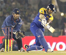 <p>The in-form Kumar Sangakkara again tormented the hosts with a 31-ball 59 to provide the impetus to the Lankan innings as the Indians dropped as many as five catches to again give a pathetic account of their fielding abilities.<br /><br />Sanath Jayasuriya (31), Chintaka Jayasinghe (38) and Angelo Mathews (26 not out) were the other notable performers for the visitors who are leading the two-match series 1-0.<br />The Indians will now have to score at a stiff asking rate of 10.30 to harbour hopes of levelling the series on a good batting track at the PCA stadium.<br /><br />If the Indians dropped five catches in the first game in Nagpur, there seemed to be no significant improvement as they continued to spill catches much to the embarrassment of new fielding consultant Mike Young.<br /><br />Electing to bat, the Lankans lost the dangerous Tillakaratne Dilshan (1) early with Ishant Sharma producing a gem of a delivery to knock down his leg stump much to the delight of a capacity crowd at the PCA stadium.<br /><br />But the seasoned pair of Jayasuriya and Sangakkara were undeterred by the early blow as they launched a savage assault on the Indian bowlers who compounded their misery by bowling a poor line and length on a track where the ball came on the bat nicely. <br /><br />Jayasuriya was particularly severe on Ashish Nehra as he clobbered him for three fours and a six in his second over. Nehra was never allowed to settle into any rhythm as both the Lankan batsmen attacked him from the very beginning.<br /><br />Indian captain Mahendra Singh Dhoni kept rotating his bowlers to contain the run flow but to no avail as both left handed duo kept the tempo going with a barrage of strokes.<br />They brought about the 50-run partnership in just 21 balls and the introduction of the slower balls hardly had any impact on the scoring rate.<br /><br />Sangakkara, who was at his devastating best in the first game in Nagpur with a quickfire 37-ball 78, was lucky to get a reprieve when on 28 with Ravindra Jadeja dropping him on the fence with Yusuf Pathan being the unlucky bowler.<br /><br />Pathan, however, had something to cheer about a couple of overs later when he had the dangerman Jayasuriya (31) trapped in front of the wicket.<br />Jayasuriya's knock contained five boundaries.<br /><br />Chinthaka Jayasinghe joined the action after Jayasuriya's departure and immediately got into the scoring act with a few crispy shot while his captain kept up the pace at the other end.<br /><br />Sangakkara completed his half-century off just 29 balls but could not survive long after achieving the milestone, with birthday boy Yuvraj Singh accounting for his dismissal.<br />It was then left to Jayasinghe and Chamara Kapugedera to take the visitors to a respectable total and the duo posted the 150 of the innings in 13.5 overs. <br /><br />But Kapugedera perished soon after offering a simple catch to Karthik in the long off region off Yuvraj as the Lankans were pegged back a little bit with two quick wickets.<br />Jayasinghe enjoyed a charmed life in the middle with two catches being dropped with Pathan bring the unlucky bowler on both the occasions. While Nehra first dropped him on 30, Gambhir spilled a chance when he was on 34.<br /><br />However, he perished in the very next over off Yuvraj Singh with Jadeja making no mistake in the square leg boundary. His 28 ball 38 was studded with three boundaries and a six.<br /><br />The Lankan captain went for a mighty heave but could not connect the ball properly and Nehra latched to a well-judged catch in the deep.<br /><br />Sangakkara's entertaining 31-ball 59 was laced with eight boundaries and two sixes.<br />The veteran Mahela Jayawardene could not survive for long as he mistimed Ishant and ballooned a simple catch to debutant Sudeep Tyagi at the long off region, reducing the islanders to 141 for four in 12.5 overs.<br /><br />Kaushalya Weeraratne, who came into the team in place of Pushpakara, was run out for three as the visitors were reduced to 167 for seven by the 17th over.</p>