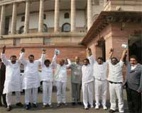 <p>The House could function barely for about 55 minutes during which legislative business was rushed through with five important bills being passed and two others introduced amid din.<br /><br />The bills passed included one on raising Salaries and Allowances of Ministers and another providing for creation of commercial divisions of High Courts.<br /><br />The entire Opposition, except TDP, was agitated at the way the legislative business was rushed through by Speaker Meira Kumar and staged a walk-out.<br />The Lok Sabha was later adjourned sine die.<br /><br />Pro-Telangana and pro-united Andhra Pradesh members engaged in vigorous slogan-shouting to press their demands as soon as the House met for the day, a repetition of the scenes witnessed during the last three days.<br />While four TDP members trooped into the well carrying placards saying 'We want united AP', pro-Telangana Congress members held placards with 'Double standard, TDP down down' written on them.<br /><br />Chanting slogans 'December 9 is the black day', the TDP members were demanding that Home Minister P Chidambaram should withdraw his announcement about creation of Telangana.<br />One of the six TDP members R Suresh was favouring creation of Telangana and carried a placard which read 'Jai Telangana'. <br /><br />Bodoland People's Front (BDF) member S K Bwiswmuthiary also rushed into the well demanding separate state of Bodoland.<br />Before adjourning the House sine die, the Speaker referred to the disruptions caused by members over the Telangana issue and hoped an amicable solution would be found to it.<br /><br />"Ours is a democratic society, which, I am sure, can find solutions to the most intractable problems," Kumar said, adding, "The maturity and sagacity found in the democratic political forces should help them discover rational approaches to solving this problem."<br />Noting that democratic processes are "characterised by the flexibility of approaches which are opposed to maximalist positions on any matter", she said, "I hope such approaches and attitudes will re-emerge in the coming days and the democratic spirit of inclusiveness will re-assert in the state of Andhra Pradesh."<br /><br />As the Speaker rushed through legislative business amid continued slogan-shouting, Left members Basudeb Acharia and Gurudas Dasgupta were seen protesting and objecting.<br />Acharia was seen talking to Samajwadi Party chief Mulayam Singh Yadav about his unhappiness and Dasgupta roped in JD(U) leader Sharad Yadav who in turn spoke to BJP's Deputy Leader Sushma Swaraj.<br /><br />Thereafter, all their members were seen walking out but not before Swaraj said it was not the way to pass the bills.<br /><br />While walking out, Lalu Prasad shouted that proper method was not being adopted to pass major legislations.<br />The Speaker, however, remained unfazed and continued with the legislative business.<br />After all the papers listed were laid on the table and the bills passed, Kumar made a customary statement on the proceedings of this session and adjourned the House sine die.<br /><br />Earlier, trouble started as soon as the House met for the day, with TDP and Congress members creating uproar during Question Hour over the demand for Telangana state and some other issues, leading to its adjournment for nearly 40 minutes till 12 PM.<br /><br />As soon as the Speaker completed obituary references, TDP members walked into the well with placards saying, "We want United AP" and raised slogans.<br /><br />The pro-Telangana Congress members, who also carried placards saying 'Double Standards - TDP Down, Down', tried to walk towards the well but were restrained by Parliamentary Affairs Minister P K Bansal and later by his deputy V Narayanasamy.<br />Mulayam Singh Yadav (SP) tried to raise some issue even as his party colleague Toofani Saroj posed a supplementary question to Finance Minister Pranab Mukherjee.<br />Sharad Yadav (JD-U) and Basudeb Acharia (CPI-M) also tried to raise some issues but were not audible in the din. </p>