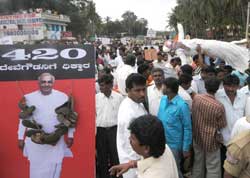 <p>The JD-S office in north Karnataka's Bidar town, about 700 km from here, was attacked but no one was hurt as the premises was closed, police said.<br />Yeddyurappa is not likely to initiate any legal action against former Gowda for using unparliamentary language against him but the state unit of BJP has threatened to file a suit against the JD(S) Chief.<br /><br />Sources close to Yeddyurappa said after holding discussions with his close associates, he has decided "to leave it to the people of Karnataka to decide what action should be taken against Deve Gowda".<br /><br />However, Karnataka BJP unit demanded an unconditional apology from Deve Gowda and threatened to drag him to court.<br /><br />"We highly object to this kind of conduct by Deve Gowda and demand that he should immediately express unconditional apology to the people of the Karnataka or else he will have to face legal action," BJP leader Dhananjay Kumar said.<br /><br />"The state BJP is contemplating legal action against the conduct of Deve Gowda," he added.<br />The use of abusive language by the former Prime Minister yesterday has annoyed the BJP Central leadership as well.<br /><br />BJP national spokesperson Prakash Javadekar said, "This shows Deve Gowda's exasperation and desperation. I can only send the message to him to get well soon."<br /><br />"By showering abuse on Yeddyurappa, an elected chief minister and holder of a constitutional post, Gowda has only brought shame to democracy," another spokesperson Ravi Shankar Prasad said.<br /><br />Gowda Sunday called Yeddyurappa "bloody b..." but expressed regret later. Gowda uttered the profanities responding to questions from reporters while protesting against land acquisition for the Bangalore-Mysore Infrastructure Corridor (BMIC) project on the outskirts of Bangalore.<br /><br />Gowda's son, JD-S Karnataka chief and former chief minister H.D. Kumaraswamy Monday said there was no need for the protests as his father had expressed regret for his statement.<br /><br />A common refrain of BJP leaders condemning Gowda's behaviour was that he had lost mental balance and be sent for medical examination or be admitted in a mental hospital.<br />Yeddyurappa, who late Sunday said he was hurt by the intemperate language of Gowda, Monday asserted that the former prime minister was bent on creating trouble but he would not fall into the trap by responding in the same manner.<br />"I will devote my attention to the development of the state. People of the state are aware of what is happening. They will give a befitting reply," he told reporters.<br />Former BJP Lok Sabha member and now Karnataka special representative at Delhi V. Dhanajaya Kumar, however, said the party was contemplating what action can be taken against Gowda.<br /><br />The BMIC project has been caught in a controversy over the area of land sought by its promoters Nandi Infrastructure Corridor Enterprises. NICE is a consortium with Kalyani Group of Companies, of industrialist Baba Kalyani, leading it.<br />NICE wants over 20,000 acres for the project, which comprises a four-lane express highway between Bangalore and Mysore, five townships each accommodating a population of 100,000 and several commercial/corporate centres along the 111-km expressway.<br />The expressway would be a toll road.<br />The government has handed over around 7,000 acres to NICE even as a legal battle over the land size required is in the Supreme Court.<br />The BMIC is estimated to cost Rs.2,000 crore (Rs.20 billion) and is to be completed over a period of 13 years.</p>