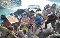 <p>One of the leading ladies in this filmathon pisses in a pot. Another woman squirts blood from a breast. Yet another sings a ditty about wallowing in crap. What crap indeed!<br /><br />At one point, the man of the moment, Karthi, asks: “What the hell is going on here?”<br />No one has a clue. If director Selvaraghavan has any, he doesn’t show it.<br /><br />Parthiban, who looks like a latter-day Idi Amin, pouts, grimaces, scratches his armpit and after a pause breaks into verse.<br /><br />What could be worse? The scenes teem with dark gooks and goblins. They hit each other, they scream, screech, howl, growl and bawl. Nobody knows who is on whose side.<br /><br />Apparently, a Chola prince and his rag-tag of subjects fled the kingdom in Tamil Nadu’s Tanjore area 800 years ago. A hunt on is on to find that lost civilisation. ]Leading the expedition are an archaeologist’s daughter, Lavanya (Andrea) and Reema Sen (Anitha Pandian). <br /><br />The archaeologist himself had gone into thin air while on the Chola trail. Anitha, it turns out, is herself a Pandya. With the backing of a Central minister, an ex-major and a handful of others, she sets out to avenge injustice and bring back a family deity.<br /><br />They go all the way to some isle in Vietnam. For some time you are led to believe that the guy is holed up in snake and leech-infested jungles. But suddenly, we find ourselves in desert country. Quirky sense of geography this!<br /><br />Mayhem unfolds in what could be Mohenjo Daro country, Hampi or the ruins of nowhere. Machine guns to the left, boulder missiles to the right. Doesn’t matter. Like the rest of this graphics and digital torture, the title does little to justify the original. The MGR flick was quite watchable despite the matinee idol’s jumping-Jack style.<br /><br />The only thing that gives you some relief is G V Prakash’s music. The songs are pulsating.<br />It’s a disastrous second outing for Karthi. Except for the initial scenes where he is breezy with his rakishness, he looks lost among the barbarians. To make matters worse are his leading ladies, the wooden-faced Reema and Andrea.<br /><br />They look like three idiots without the i-quotient.<br /><br />Selva gives a parting kick: the Chola’s journey will be continued. One wag commented: Oh, not again!<br /></p>