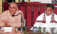 <p>Speaking at a special meeting held in the office of the Deputy Commissioner on Saturday, the minister asked the officers of exploiting the possibilities of promoting sheep rearing, dairy farming and other subsidiary occupations as alternatives to agriculture in the district.<br /><br />Observing that groundwater has depleted to alarming level endangering the livelihood of farmers in the district which lacks a permanent irrigation facility, the minister asked the officers to submit a comprehensive report on alternative avocations within January 25.<br /><br />No to borewells<br /><br />“Farmers should not be advised to sink borewells. Instead, they should be motivated to take advantage of the benefits available under various schemes of Horticulture and Agriculture departments,” the minister suggested.<br /><br />Muniyappa said that he had appealed to the Chief Minister to formulate alternative plans for agriculture in Kolar in view of the fact that farming had become not viable due to water scarcity. <br /><br />The office of the Chief Minister, in turn, has instructed the Deputy Commissioner and Zilla Panchayat chief executive officer to formulate a plan in this regard. <br /><br />A meeting of elected representatives of the district will be called on January 30 to deliberate on alternative plans and bring pressure on the government to implement them. The meeting in which Zilla Panchayat and Gram Panchayat members will take part, will also deliberate on the comprehensive development of tanks in the district. <br />Muniyappa revealed that a sum of Rs 112 crore has been spent in the district so far under MGREGS and it would be raised to Rs 250 crore in future.<br /><br /> He suggested to divide 1,700 tanks in the district in five categories and formulate a five-year plan for desilting tanks and construction of check dams. This would help in recharge of dried up borewewlls.<br /><br />The district has 4 lakh hectares of cultivable land supporting two lakh farmers. Of them 30,000 are large farmers and 1.70 lakh small and marginal farmers. The peasants should be persuaded to adopt drip irrigation system and desisted from sinking borewells for a period of five years, he directed.<br /><br />Objected<br /><br />However, the suggestion was objected to by a few in the meeting. They contended it costs Rs 50,000 per acre to install drip irrigation system and small farmers cannot afford to bear the expenditure. The minister promised to return to them after discussing the subject with the officers concerned.<br /><br />Meanwhile, Kaiwara Block Congress president Anil Kumar expressed apprehension that the district may be blacklisted in view of large-scale irregularities in implementation of Mahatma Gandhi Rural Employment Guarantee Scheme. “Works have not been taken up in some villages despite release of crores of rupees. The scheme, which should have been labour-centric has turned out to be lucrative proposition for contractors,” he alleged.<br /><br />Zilla Panchayat CEO G V Rangarao, however, defended that the the Scheme is being implemented properly in the district and advised Anil Kumar “not to level allegations without proper information.” This prompted Kumar to react stating that he would provide required information and asking the CEO to take necessary action.<br /><br />The argument came to an end with the intervention of the minister. He suggested that Deputy Commissioner and ZP chief executive officer should visit the villages where works worth Rs five crore have been carried out for stock-taking and initiate action against those found guilty.<br /><br />Legislators Amaresh, M Narayanaswamy, in-charge Superintendent of Police S R Phaneendra Singh were present in the meeting.<br /><br /></p>