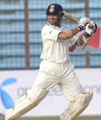 <p>For the better part of the last 20 years, the duty of absorbing pressure was stacked exclusively on the shoulders of Sachin Tendulkar. On the face of an intense scrutiny from Bangladesh in the first Test, the Mumbai man was asked to act as a sponge once again and he responded with a shining hundred, his 44th in Test cricket and the spine of India’s first-innings total of 243.<br /><br />The knock was incandescent not solely for the quality of shots it contained. It saved India from a hopeless situation, opening up myriad possibilities and setting up an excellent Test match, weather permitting.<br /><br />Indian bowlers too should be given credit as they reduced Bangladesh to 59 for three to turn the momentum in their team’s favour when bad light and fog forced an early close to the second day’s play on Monday.<br /><br />But taking a grip on the match would not have been possible without Tendulkar. The Mumbaikar, who remained unbeaten on 105, had made most of his runs on Sunday, but watching him reaching a landmark might have instilled a fresh dose of belief into the Indian camp.<br /><br />With just Ishant Sharma and S Sreesanth remaining for company, Tendulkar made his intentions clear from the beginning of the day, which started 90 minutes behind schedule. As expected, Shakib al Hasan and Shahadat Hossain, the most and only successful bowlers for Bangladesh in this innings, started the proceedings.<br /><br />Tendulkar pulled Shahadat and then carted Shakib over mid-wicket for boundaries as India moved ahead. There was also a hint of aggression when the maestro smashed Shakib over long-on for a six, his second in the innings as a brief smile and a shake of head conveyed his enjoyment.<br /><br />The master batsman reached his milestone with a cut off Shahadat that sped past point, and that familiar celebration followed, raised hands with eyes firmly fixed on the heavens. It was an impeccable effort considering the utter irresolution at the other end, resulting in constant tumbling of wickets. Had there been a bit more support for him from a frontline batsman, India would have been in a far stronger position.<br /><br />Shahdat provided the much-needed breakthrough jettisoning the sticky Ishant when the Delhi lad edged him to stumper Mushfiqur Rahim. It was Shahadat’s third five-wicket haul in Tests. Sreesanth did not last long as Imrul Kayes safely grabbed a leading edge off Shakib, giving the Bangladesh skipper a five-for, his sixth in Test cricket.<br /><br />Bangladesh’s confidence, gained through a superlative effort with red cherry, reflected in their batting as well, at least in the beginning. Openers Tamim Iqbal and Imrul Kayes faced Zaheer Khan, Ishant and Sreesanth with ease scoring nearly five runs per over as Bangladesh ended the pre-lunch session at 21 for no loss.<br /><br />Light played truant, forcing a five-minute delay in the start of the post-lunch session and the hold-up, never mind the brevity, seemed to have affected the openers’ concentration. Kayes, guilty of playing across too often, finally paid for his error when umpire Billy Bowden upheld Zaheer’s shout for leg-before.<br /><br />The wicket opened up an avenue the Indians were so desperately looking for and they consolidated soon when Ishant ousted Shahariar Nafees. The left-hander could not negotiate a quicker good length delivery and the ball ended in the hands of a waiting VVS Laxman at second slip after taking a thick edge.<br /><br />Zaheer cut open the wounds when he sneaked the ball past Iqbal’s bat to reposition the off-stump. Just as the day began to produce sparks, elements wrapped its cold hands around the proceedings.<br /></p>