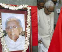 <p> The state honour ceremony will be performed by the Army. Even as a stream of mourners queued up before CPIM headquarters and Indira Bhavan, the official residence of Basu here to pay their last respects, Bose announced that there will be no funeral and no last rites.<br />A portrait of Basu has been placed on a pedestal in front of the party headquarters on Alimuddin Street to enable mourners to pay floral tributes to the departed leader, as West Bengal observes a two-day state mourning from Monday. <br /><br />Mark of respect<br /><br />The tricolour flew at half mast, state government offices and almost all private establishments remained closed and roads were almost deserted as a quiet fell over the city and the adjoining districts. Across the state silent mourning processions were taken out.<br /><br />A motley crowd gathered in front of Central Kolkata’s Peace Haven, the funeral parlour where Basu’s body is being kept for Tuesday’s last journey. Red flags in half mast have been put up all around the parlour, while a red cloth with “Jyoti Basu amar rahe” (Long live Jyoti Basu) written on it was flung near the main gate.<br /><br />“I will stay here the whole day. I have attended so many of his huge rallies. Listening to him was an inspiration,” said Jaideep Majumdar of Jadavpur, standing before the parlour.<br />Many of the vernacular dailies played on the word “Jyoti” (which means light). “Jyoti nirbapito” (the light goes out) said one, while another banner headline read: “Jibon Jyoti nibhlo” (The light of life is extinguished). “Bidai” (adieu) said a brief but emotional headline in the CPM’s Bengali mouthpiece “Ganashakti” with a full page photo of Jyoti Basu, according him the customary communist red salute.<br /><br />Basu’s body will be taken in procession from “Peace Haven” on Tuesday first to the state secretariat, then the Assembly building and finally to the state-run SSKM Hospital for handover to the hospital authorities.<br /><br />According to CPM sources, UPA chairperson Sonia Gandhi, BJP leaders L K Advani, Gadkari and RJD supremo Lalu Prasad are expected to fly in on Tuesday to attend the Marxist leader’s “last journey.” <br /><br />The party has been awaiting confirmation of Nepalese Prime Minister Madhav Kumar Nepal and Venezuelan President Hugo Chavez for their arrival here to pay their last respects to Basu. Bangladesh Prime Minister Sheikh Hasina is likely to arrive on Tuesday.<br />A holiday has been declared in the state government offices as a mark of respect to the veteran communist leader. However, banks, financial institutions and Central government offices and undertakings remained open as the holiday was not declared under the Negotiable Instruments Act.<br /><br />The gun salute, Bose said, will be given to Basu at Mohar Kunj, earlier called Citizens’ Park, located close to the SSKM Hospital premises. All members of the CPM politburo and Central Committee will attend the last journey.<br /></p>