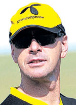 <p>“I am really happy with the bowling performance. The fielders too did a great job today. We took the last two wickets quickly. If the tail had hung around with him, Tendulkar could have taken them to a bigger total. So I am happy,” Siddons said at the end day second day’s play after India, resuming on 213 for eight, were restricted to 243 in their first innings.<br /><br />However, Siddons expressed his disappointment at his team losing three wickets in just 17 overs. “Three wickets, while batting, at the end of the day was pretty ordinary effort. We had two bad shots today. There was no instruction to be extra aggressive. Transition from one-dayers to Test can get a little tougher for some. But overall we are in a good position in the game,” he said.<br /><br />Looking ahead, Siddons said, “I am hoping they will apply themselves. I am hoping for one of the remaining batsmen to hit a hundred and we still have batsmen who can hit Test hundreds.”<br /><br />On the weather, Siddons said, “There is still three days to go. We got only a few overs today and that left every one disappointed. We would have liked to bat more.”<br />Indian skipper Mahendra Singh Dhoni, meanwhile, seems to have recovered from the back spasm which ruled him out of the first Test.<br /><br />Dhoni was on Monday seen bowling in the nets after play was suspended due to bad light.<br /><br />Dhoni bowled at openers Gautam Gambhir and Virender Sehwag during the practice session. His unavailability for the series-opener was only known on the eve of the match and Sehwag was asked to lead the side.<br /><br />Dhoni might be fit for the second Test, scheduled to start in Dhaka on January 24.</p>.<p>SCORE BOARD </p>.<p>INDIA (I Innings, O/n: 213/8): <br /><br />Gambhir c Rahim b Shahadat 23<br />(76m, 44b, 3x4)<br />Sehwag c Tamim b Shakib 52<br />(74m, 51b, 9x4)<br />Dravid b Shahadat 4<br />(14m, 10b, 1x4)<br />Tendulkar (not out) 105<br />(247m, 166b, 11x4, 2x6)<br />Laxman st Rahim b Shakib 7<br />(52m, 30b)<br />Yuvraj c Rubel b Shakib 12<br />(50m, 32b, 1x6)<br />Kaarthick c Raqibul b Shahadat 0<br />(5m, 3b)<br />Mishra lbw Shahadat 14<br />(59m, 41b, 1x4)<br />Zaheer c Raqibul b Shakib 11<br />(39m, 18b, 2x4)<br />Ishant c Rahim b Shahadat 1<br />(42m, 24b)<br />Sreesanth c Kayes b Shakib 1<br />(13m, 12b)<br />Extras (B-1, LB-6, W-1, NB-5) 13<br />Total (all out, 70.5 overs) 243<br />Fall of wickets: 1-79 (Sehwag), 2-79 (Gambhir), 3-85 (Dravid), 4-107 (Laxman), 5-149 (Yuvraj), 6-150 (Kaarthick), 7-182 (Mishra), 8-209 (Zaheer), 9-230 (Ishant).<br />Bowling: Shafiul 9-1-41-0, Shahadat 18-2-71-5 (nb-2, w-1), Rubel 10-0-40-0 (nb-3), Shakib 29.5-10-62-5, Mahmudulla 3-0-17-0, Ashraful 1-0-5-0.<br /><br />BANGLADESH (I Innings):<br />Iqbal b Zaheer 31<br />(75m, 41b, 6x4)<br />Kayes lbw Zaheer 23<br />(65m, 46b, 5x4)<br />Nafees c Laxman b Ishant 4<br />(4m, 3b, 1x4)<br />Ashraful (batting) 0<br />(8m, 5b)<br />Raqibul (batting) 1<br />(4m, 3b)<br />Total (for 3 wkts, 17 overs) 59<br />Fall of wickets: 1-53 (Kayes), 2-58 (Nafees), 3-58 (Iqbal).<br />Bowling: Zaheer 9-1-32-2, Sreesanth 3-0-13-0, Ishant 5-1-14-1. </p>
