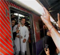 <p>With Shiv Sena patriarch Bal Thackeray issuing a diktat to his party cadres to greet the “Italian Prince” with black flags to mark the party’s protest against his “Mumbai for all” remarks, Rahul thumbed the nose at the Sena when he jettisoned plans to go to a slum in Ghatkopar by a waiting helicopter for his second and final engagement in the city.<br /><br />On his part, Sena executive president Uddhav Thackeray said Rahul’s visit exemplifed “Mussolini” rule in Maharashtra that prevented Shiv Sena workers from exercising their democratic right of protest.<br /><br />He described Maharashtra’s Congress chief minister Ashok Chavan as “a watchman” for waiting nearly an hour and a half under a tree in Ghatkopar to receive Rahul and the minister of state for home as someone who “looked after his shoes”.<br /><br />But unfazed by the Sena threat and in a gesture loaded with symbolism, Rahul, who was on his way from suburban Vile Parle to Ghatkopar after addressing college students, abruptly disembarked from his motorcade outside Andheri railway station on the Western Railway Line and boarded a Dadar-bound local train. There were reports that Rahul even used an ATM.<br /><br />He travelled on the Virar-Dadar fast train in a second class compartment along with the general public much to their delight but sent security personnel into a tizzy. Rahul got off 15 minutes later around 1.15 pm at Dadar where he crossed a bridge to come to reach the Central Line from where he took a train to Ghatkopar.<br /><br />He got into a first class coach of a Kalyan-bound train to go to Ghatkopar which is four stations away, a railway official said. Rahul also signed autographs for wide-eyed passengers who gushed at seeing him in their company. After a four-hour visit, Rahul left for Puducherry.<br /><br />Rahul did not lose the opprtunity to send a loud and clear message to the Shiv Sena, warning people here against attempts to divide them on communal and linguistic basis.<br /><br />“My father was born in Mumbai and mother in Italy. My great-grandfather was born in Allahabad, who also had origins in Jammu and Kashmir. I live in Delhi. Where should I say I belong to? I know one thing that I am an Indian and belong to India,” he said in an interaction with students without even a mention of the Sena or the protests.<br /><br />Denouncing sectarian politics, Rahul told an audience at Bhaidas College that the Congress “stands for a united India. There are two kinds of leaders in the country. One who divide and rule and others who collaborate and take everyone along with the objective of a united India and move forward. There are some people here who are trying to divide you on communal and linguistic basis and Congress is against them.”<br /><br />Protected by the SPG, 39-year-old Rahul was accompanied by newly appointed Indian Youth Congress president Rajeev Satav and party MP Jitendra Singh. This was Rahul’s maiden visit to the financial capital after becoming AICC general secretary.<br /><br />Scores of Sena supporters were rounded up while staging protests as a massive security blanket was thrown over the city by the Mumbai police.<br /><br />According to Mumbai Youth Congress chief Sunil Ahire, Rahul was slated to board a chopper at Vile Parle and land at Godrej Compound in Vikhroli to avoid any ugly incidents. But in a dramatic action, Rahul changed his mind midway. , Ahire said, outsmarting the Shiv Sena, to board a suburban train.</p>