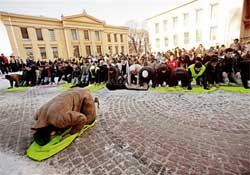 <p>The demonstrators waved placards calling for a boycott of the Dagbladet daily which published the caricature on February 3.<br /><br />Dagbladet's acting editor-in-chief Lars Helle told The Associated Press that he doesn't regret printing the offending image and that he welcomed Friday's protest.<br />Protesters said they wanted to show Norwegian media how hurtful such images are to the community.<br /><br />"We have done nothing to anybody. We want to live here in peace. Norway is our home. Our children live here. Why should they (Norwegian media) hurt us like this?" said Naradim Muhammad, a 43-year-old school teacher who helped organise the demonstration.<br />The demonstration was peaceful, police said.</p>