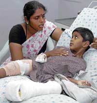 <p>A speeding earth mover hit a parked two-wheeler which fell on his left leg, and dragged him for over 100 meters even as his parents and grandparents watched in horror. It was 4.30 pm, at Madanayakanahalli on Tumkur Road, time and place which Karthikan wouldn’t forget in his lifetime. <br /><br />Karthikan had sustained severe crush injury and loss of entire flesh and skin of the leg on left side damaging blood vessels, nerves, bones and muscles and tendons. After the initial treatment at a local hospital, Karthikan was brought to HOSMAT here at around 8.15 pm on Sunday. <br /><br />Doctors found that the patient had lost flesh and skin over the front and back portion of the foot, muscles of the front portion of the foot, was crushed badly and great toe was also severely crushed. The bones of leg, ankle joint and toes were exposed. After the wound debridement and initial surgery, plastic surgeon Dr N K Deepu did a micro vascular muscle transfer to save Karthikan’s limb. <br /><br />But Karthikan’s father Madhu, a tailor is finding it tough to meet the expenses. The hospital could be contacted on Ph: 25593797/25593747/ Ext 252.</p>