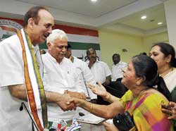 <p>Visiting four constituencies, including D J Halli and Shivajinagar, Azad made his five-minute pitch for the votes of minorities and women at each of the stops.<br /><br />“Compare the history of both parties, Congress and the BJP. You all know that under the rule of the Congress at the Centre, the minorities, women and the backward classes got their rightful reservation. Vote for the Congress and we will deliver what we promise,” said Azad.<br /><br />The support for Azad was resounding in DJ Halli and Shivajinagar. Flanked by local MLAs Prasanna Kumar and Roshan Baig, Azad praised the central leadership of Sonia Gandhi, Manmohan Singh and Rahul Gandhi for their efforts to get the reserved categories their due. He asked the people to vote for the party that brought in the reservation rules. <br />He took a dig at the ruling party for not spending even 10 percent of the funds released under the JNNURM scheme for the City. <br /><br />“The Congress had allocated Rs 22,000 crore under the JNNURM scheme for Bangalore. Not even 10 percent of these funds have been utilised for the welfare of the City,” he said. <br /><br />Supported by the KPCC president, R V Deshpande, who blamed the BJP for its inadequate law and order system and false promises, Azad went from Hebbal to Pulakeshinagar, Shivajinagar and finally ended his campaign at Chamrajpet. <br /><br />Whether his importance will play any role in getting support for the Congress candidates the coming week will decide.<br /><br /></p>