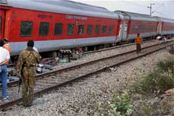 <p>As their 48-hour bandh entered the second day today, the Maoists stepped up violence leading to disruption of rail services and cancellation of several trains. There was no casualty or injury in the incident involving Bhubaneswar-New Delhi Rajdhani Express late last night.<br /><br />A policeman was gunned down by the Maoists in Jharkhand's Sareikela-Kharsawan district after they fired indiscriminately on a police patrolling team near Chouka police station around 1.30 am. He was identified as Kalicharan Bodra. Suspected Naxalites also abducted four traders in Bokaro district.<br /><br />A major disaster involving the Rajdhani Express was averted since the prestigious train was travelling at a slow speed when ten of its coaches and the engine jumped off the tracks near Gaya station following an explosion triggered by Maoists. The accident took place late last night between Kasta and Paraiya stations under Gaya-Mughalsarai section of the East Central Railway, the police said.<br /><br />"The train's speed was 75 km per hour and that is why a big disaster could be avoided," train driver R K Singh said, adding that he applied the brakes immedaitely after seeing red flag on the rail track. An eyewitness said the alertness of the driver prevented a "major mishap".<br /><br />Rail traffic was disrupted in the section since midnight last night as cranes were engaged to remove the affected bogies, railway sources said. Passengers were taken to Mughalsarai by a rescue train from where a special train was arranged to send them to New Delhi, they said.<br /><br /></p>.<p>The explosive planted in the tracks between Kasta and Paraiya stations went off shortly after the train left Gaya station, district Superintendent of Police Sushil Khopde said, adding a medical team with rescue train was sent to the spot. There was no casualty or serious injury, Khopde said, adding none of the derailed bogies fell on its side which possibly was the reason why no casualty took place.<br /><br />The Maoists are observing the shutdown in Jharkhand, Bihar, Orissa, West Bengal, Chhatisgarh, Andhra Pradesh and three districts of Maharashtra to protest against the stepped up anti-naxal operations, price rise and arrests of some of their cadres. Train services in the Mumbai-Howrah route in Orissa were suspended following two explosions triggered by the Maoists near Rourkela.<br /><br />A goods train which was passing that way got derailed after the blasts at a place between Birsa and Bongomunda stations in the wee hours, railway officials said. Preliminary reports have suggested that there were no injuries or causalities in the incident.</p>