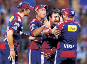 <p>Such is the nature of T20 format that a stand-out innings or an exceptional over can change the course of the game. Chasing a big but an achievable 184, given their track record in this edition, the Royal Challengers needed an innings of supreme quality. Unlike in their previous match against Chennai Super Kings when they found a saviour in marauding Robin Uthappa, albeit while setting the target, there was no one from the home side rising to the occasion on the day as they replied with 166 for nine to hand Daredevils a 17-run win, their first in the last four matches.<br /><br />Despite the defeat, Anil Kumble’s men will remain at the top of the table with eight points and if Mumbai are to lose their Thursday’s game against Chennai Super Kings they can still maintain their numero uno position.<br /><br />Jacques Kallis and Manish Pandey (39, 29b, 4x4, 1x6) started the chase in right earnest raising 71 for the opening wicket in 56 balls, but once the combination was separated, Challengers failed to sustain the momentum. Uthappa, who walked in to a rapturous welcome by the capacity crowd, flickered briefly while Rahul Dravid needlessly ran himself out. Eoin Morgan and Virat Kohli (38, 23b, 4x4, 1x6) put up a brief resistance, which ended in another run out. <br /><br />In fact, run-outs appeared to be the feature of the day as R Vinay Kumar too departed the same way. In between Mark Boucher had found an obliging Virender Sehwag at mid-wicket effectively ending the Challengers’ chase. The defeat also meant that the Challengers suffered their maiden defeat at their home ground and only their second after the loss in the opening match. <br /><br />Daredevils, invited to bat first, got off to a dream start with David Warner making his intentions clear right from the ball one. The diminutive left-hander took 13 runs off Praveen Kumar’s opening over and then clobbered Dale Steyn for 16 in the next as runs came thick and fast. <br /><br />In no time Warner and Sehwag, a lot subdued as his partner went berserk, raised 50 and the six overs of Power Play yielded 64. Though both Warner and Sehwag, who was winkled out by Vinay off his first ball, departed in quick succession after giving a head start to the innings, AB de Villiers (45, 35b, 3x4) propelled the innings along in the company of a sedate Kaarthick.<br /><br />Looking the part<br /><br />Looking the part for the first time in the tournament, the South African raised 43 runs for the third wicket to keep the momentum going for the visitors before a brilliant pick-and throw from mid-on caught him short of crease and ended a fruitful stint. <br /><br />At 134 for three in the 16th over, Daredevils score wasn’t anywhere near intimidating when IPL debutant Kedar Jadhav exploded in stunning fashion. The Maharashtra batsman, who was part of the Challengers’ squad in the second edition but didn’t travel to South Africa, struck an unbeaten 50 (29b, 5x4, 2x6) and along with Andrew McDonald, coming in place of Tillakaratne Dilshan, carted the home bowlers around for 49 off just 23 balls as Daredevils innings motored along at a frenetic speed to which the Challengers couldn’t keep up the pace. <br /><br />Score Board</p>.<p>DELHI DAREDEVILS: David Warner c Vinay b Steyn 33 (13b, 3x4, 2x6), Virender Sehwag c Kohli b Vinay 12 (11b, 2x4), AB de Villiers (run out) 45 (35b, 3x4), Dinesh Kaarthick (run out) 17 (19b, 1x4), Kedar Jadhav (not out) 50 (29b, 5x4, 2x6), Andrew McDonald (not out) 18 (12b, 1x4). Extras (LB-1, W-1) 8. Total (for 4 wkts, 20 overs) 183.<br />Fall of wickets: 1-44 (Warner), 2-58 (Sehwag), 3-101 (Kaarthick), 4-134 (de Villiers). <br />Bowling: Praveen Kumar 4-0-45-0 (w-3), Dale Steyn 4-0-42-1 (w-2), Jacques Kallis 4-0-36-0 (w-1), Vinay Kumar 4-0-29-1 (w-1), Anil Kumble 4-0-30-0.<br />Scoring pattern: After 5 overs: 58/1; 10: 95/2; 15: 128/3; End of innings: 183/4 in 20 overs.<br />Runs during Power Play: 1-6 overs: 64/2.<br /><br />ROYAL CHALLENGERS BANGALORE: Manish Pandey b McDoland 39 (29b, 4x4, 1x6), Jacques Kallis b Mishra 27 (29b, 3x4), Robin Uthappa c Kaarthick b Mishra 15 (10b, 1x4, 1x6), Rahul Dravid (run out) 1 (1b), Eoin Morgan (run out) 17 (13b, 2x4), Virat Kohli (not out) 38 (23b, 4x4, 1x6), Mark Boucher c Sehwag b Sangwan 2 (3b), Vinay Kumar (run out) 2 (2b), Praveen Kumar c De Villiers b Yadav 0 (1b), Dale Steyn b McDonald 8 (9b, 1x4), Anil Kumble (not out) 1 (1b). Extras (LB-11, W-4, NB-1) 16. Total (for 9 wkts, 20 overs) 166.<br /><br />Fall of wickets: 1-71 (Kallis), 2-85 (Pandey), 3-86 (Dravid), 4-90 (Uthappa), 5- 120 (Morgan), 6-123 (Boucher), 7-135 (Vinay), 8-137 (Praveen), 9-165 (Steyn).<br />Bowling: Dirk Nannes 4-0-31-1, Umesh Yadav 4-0-27-1 (nb-1), Pradeep Sangwan 4-0-32-1 (w-4), Amit Mishra 4-0-23-2, Andrew McDonald 4-0-42-2. <br />Scoring pattern: After 5 overs: 37/0; 10: 78/1; 15: 121/4; End of Innings: 166/4 in 20 overs. <br />Runs during Power Play: 1-6 overs: 46/0. </p>