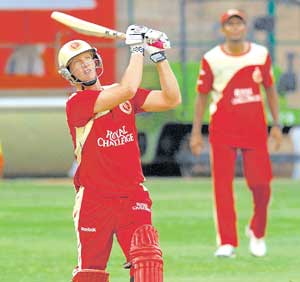 <p>Barring the absent duo of Praveen Kumar and Robin Uthappa, a majority of the rest of the squad brushed up on its skills, watched by eagle-eyed coach Ray Jennings and Kumble himself.<br /><br />Key batsmen Rahul Dravid and Mark Boucher, who haven’t had too many chances to showcase their wares, had long batting stints in both innings, while South Africans Jacques Kallis and Dale Steyn, who were both present at the ground, stayed away from cricketing drills while working on physical fitness.<br /><br />There was a mini-scare when Eoin Morgan, the Irishman who hasn’t the best of times with the bat, sustained a small cut in his right hand whilst keeping wickets. The left-hander, however, returned to bat under lights, aware that with Cameron White already here and with the arrival of Kevin Pietersen and Kiwi Ross Taylor imminent, his place in the playing eleven is under genuine threat.<br /><br />Pietersen, who led the Challengers during the early part of IPL II in South Africa with disastrous results, is expected to join his team-mates on Monday morning and take part in another match simulation exercise in the afternoon. The Challengers will leave for Chennai on Tuesday morning for their clash against the hapless Chennai Super Kings the following afternoon.<br /><br />The Chennai match will the first of three away games in five days for Kumble’s men. By the time the third of those matches comes around, against the Delhi Daredevils on April 4, Taylor too is expected to join the Challengers. With big-hitting Australian White already a part of the set-up, the Challengers will thus be at full strength as the business end of the IPL comes around.</p>