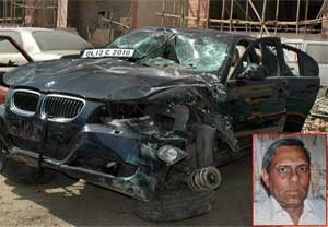 <p>Om Dutt Chauhan was taking a walk near the Akshardham chowk when the BMW, which was trying to overtake a bike, hit him, killing him, police said. The accident took place near the house of the deceased.<br /><br />The car overturned due to the impact. Three occupants of the car have been detained, they said.<br /><br />The nephew of the deceased Sandeep Chauhan alleged that his uncle was not immediately taken to hospital.<br /><br />"Police took the BMW occupants to police station first and then took my uncle to hospital. If they had taken prompt action, my uncle would have been saved," he claimed.<br /><br />Police has denied the allegations. <br /><br />A large number of locals gathered at the spot soon after the accident which took place at 6.30 am and protested the alleged police negligence.<br /><br />Locals alleged that police left Chauhan at the spot and took the three BMW occupants to police station.<br /><br />They claimed that Chauhan was conscious and police took 30 minutes to take him to hospital. He could have been saved if police had taken him to hospital in time.<br /><br />Angry locals damaged the BMW, blocked traffic and shouted slogans. Senior police officials, including Additional Deputy Commissioner of Police I B Rani visited the spot and tried to pacify the locals.</p>