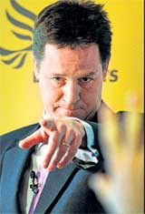 <p>The centrist Lib Dems and their multilingual leader Nick Clegg face increased scrutiny this week as Labour and the Conservatives seek to bring them down to earth. <br /><br />A YouGov poll in the Sun newspaper gave the Lib Dems 33 per cent of the vote, one point ahead of the Conservatives, with Labour, in power for 13 years, trailing on 26 per cent. <br />Under the quirks of Britain’s first-past-the-post election system, that would make the Conservatives the biggest party in the 650-seat parliament and give the Liberal Democrats about 130 seats — almost double the number they have now. <br /><br />That could allow the Liberal Democrats to form a coalition with either of the other parties. Markets fear a so-called hung parliament because they believe it would jeopardise efforts to curb a budget deficit running at in excess of 11 per cent of GDP. <br /><br />Sterling fell sharply on Monday on concerns that the May 6 election would leave no party with an overall majority.<br /><br />‘I want to be PM’<br />Clegg, 43, who has been transformed from a virtual unknown to a rising star after his performance in the first TV debate, set his sights high. “I want to be the next prime minister,” he told a news conference. <br /><br />The Lib Dems appear to have struck a chord with voters disillusioned with politicians after a scandal over MPs’ expenses which has hit the two biggest parties hardest. <br />Clegg, Brown and Conservative leader David Cameron will face off in another live televised debate on Thursday. <br /></p>