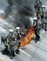 <p>“We have found three dead people in the building that is on fire,” the fire brigade said in a statement.<br /><br />Protesters clashing with police set the commercial building on fire as tens of thousands of Greeks marched to parliament, testing the government’s resolve in enacting deep budget cuts in return for billions of euros in EU/IMF aid.<br /><br />In the worst violence since the Socialist government came to power in October, hundreds of striking demonstrators pelted police with rocks, chunks of marble and bottles, set garbage cans on fire and tried repeatedly to storm parliament, shortly before lawmakers began a debate on the belt-tightening measures.<br /><br />The violent protesters were repelled by police in full riot gear hurling repeated rounds of tear gas and flash bombs, and smoke wafted through blocks of central Athens.<br /><br />Masked youths threw petrol bombs, broke shop windows and shouted “Murderers” and “Burn the parliament,” in a sign of swelling public anger at the government’s plans for painful wage and pension cutbacks.<br /><br />A giant plume of dark grey smoke rose over the central Stadiou Avenue where the two-storey commercial building, which houses a branch of the Marfin bank, was burning. Officials said two other buildings in the centre of the capital had been set on fire during the protest.<br /><br />Biggest protest<br /><br />Police estimated the march at about 27,000 people. But eyewitnesses said there were at least 40,000 — easily the biggest protest since Greece was first hit by a debt crisis late last year.<br /><br />Public and private sector workers are staging their third joint strike this year. They have grounded flights, shut shops and brought public transport to a standstill.<br /><br />“These measures are horrible,” said Maria Tzivara, a 54-year-old saleswoman. “I’m afraid I’ll get fired or my salary will be cut. It will be very tough.”</p>