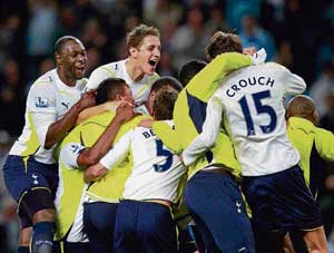 <p>Crouch, with England manager Fabio Capello watching on, nodded in a rebound after 82 minutes to spark wild celebrations among fans who had travelled up from north London to see their team book a place in the Champions League qualifiers. <br /><br />City would have leapfrogged Tottenham with a victory but could have no complaints as the visitors carved out the better chances in a match of gut-wrenching tension at Eastlands. <br />Tottenham have 70 points from 37 matches and could still finish above north London rivals Arsenal who have 72 points in third spot. Victory at relegated Burnley on Sunday and defeat for Arsenal at home to Fulham would mean Tottenham going straight into the Champions League group stages. <br /><br />The north London club, who like City have lived in the shadow of their neighbours for so long, have not appeared in Europe's top club competition since 1962, a year after they last won the English title. <br /><br />The fact that they have broken into the established top-four at the expense of Liverpool and big-spending City marks an amazing transformation since Harry Redknapp took over as manager in 2008 with the club bottom of the Premier League. <br />But just when it seemed Tottenham might be made to pay for their profligacy in front of goal Younes Kaboul fired over a fizzing cross which deflected off City left back Wayne Bridge and Fulop could only parry it on to the head of the lurking Crouch.<br />In another match, Stoke City defeated Europa League finalists Fulham 1-0 through an 83rd minute Matthew Etherington goal.</p>