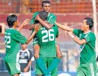 <p>Veteran Xavier Vijay Kumar led the fascinating show with a second consecutive brace while Frederick Okwagbe and Rajendra Prasad thundered in a goal apiece as the Aircraftmen maintained their impressive form much to the delight of their fans at the Bangalore Football stadium.<br /><br />Indicative of the scoreline, HASC were a cut above their opponents for the better part of the fixture, except for a minor blemish when Theodore Sunday Wrdbeh struck the opener for Sporting in the 21st minute. The Aircraftmen, who used to lost the grip over proceedings after conceding an early goal on some previous occasions, this time replied in outstanding fashion as they countered every Sporting challenge solidily. <br /><br />If Xavier dominated the wings, attacking and defending brilliantly, Satish Kumar Jr tresspassed the rival defence at will. Young defender Ricky Joy, entrusted with the job of marking the dangerous Eduardo Da Silva, did his job perfectly but the unsung hero was goalkeeper Amar Deb.<br /><br />The 25-year-old pulled off three successive saves in the 53rd minute when HASC had just gone into a 2-1 lead before stopping a stinging shot form Eduardo 10 minutes later and a couple more vicious free-kicks from the Brazilian.<br /><br />After knocking at Sporting’s door on a host of occasions, HASC equalised through Xavier 38th (minute) when the medio breezed into the box from the right and blasted the ball past a stunned Sporting custodian Naseem Akhtar. Much criticised for his sloppy finishing, Nigerian striker Okwagbe sent the crowd into a frenzy when he rifled the ball over Akhtar seven minutes into the second half.<br /><br />With tension mounting after Sporting were denied the equaliser with some gritty defending, Xavier calmed the nervous with a lob in the 77th minute, giving HASC a 3-1 lead. Sporting’s day ended more embarrassingly when Akhtar shot the ball straight to Prasad in injury time, the medio made no fumble. <br /><br />Other result: Vasco: 2 (Joy Ferrao 60th, Koko Sakibu 84th) bt NISA: 0.</p>