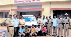 <p>Avinash, a member of a notorious gang that had instilled fear among the vehicle owners around the town, was arrested by the police at Dhabbeghatta on Tuesday. <br />The gang members were notorious for their modus operandi - they would throw chilli powder to get what they wanted. In the last two months, they had stolen two qualis vehicles operating in the same manner and had become a headache for the police. <br /><br />Background<br />On April 6, the gang had managed to steal a qualis vehicle from Surendra of Bangalore. They had sprinkled chilli powder on him near Biganenahalli and drove away the vehicle pushing the driver to a ditch. <br /><br />In a similar method, they had made a vain bid to steal the vehicle from Muniraj, who was on his way to Dharmasthala, near Goramalutt. Following a complaint by Surendra and Muniraj, the police suspected that the gang members are from neighbouring villages. <br />A team was formed investigate into the matter under the guidance of Superintendent of Police P S Harsha, Kunigal Sub-division Additional Superintendent of Police Shashikumar and Circle Inspector of Police K B Vishwanath. <br /><br />Following a tip off that one of the gang members was a would-be groom, the police asked his would-be bride to call him up asking him to visit ailing in-laws. This worked and thus Avinash was nabbed. <br /><br />Later, Avinash spilled the beans and with his help, the police arrested Dore, Nagaraj and Gangadhar. The police are on the lookout for the rest of the members. The arrested have been identified as Navin Kumar of Donkihalli, Avinash of Dhabbeghatta, Nagaraj of Achahalli, Gangadhar of Doddagoraghatta, Arun Kumar of Devaramadahalli and Dore of Chikkonahallipura. <br /><br />The police have seized two qualis vehicles, one mobile phone and goods worth Rs seven lakh from the two incidents. The arrested were produced before the Magistrate on Tuesday evening. <br /></p>