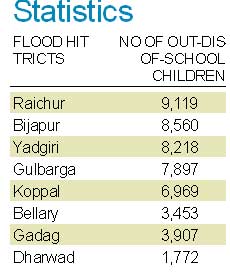 <p>The floods and its effects forced thousands of people to leave their houses suddenly. This also interrupted children’s education. The latest study conducted by the Department of Public Instruction shows that the highest number of students who dropped out of schools and those who never enrolled are in the flood-affected areas. <br /><br />As many as 1.11 lakh children remained out of schools in the State in 2009-10. Of them, over 67 per cent were from North Karnataka districts. When the rain and floods wrought havoc in October 2009, schools in north Karnataka schools were closed for mid-term vacations. Along with houses, school buildings were flooded. School children and teaching staff lost valuable records and text books in the rain water. <br /><br />Asha Kirana<br /><br />The government launched a programme named Asha Kirana, to look after basic needs of children affected in the floods. They were provided with shelter and food in make-shift sheds. The schools were scheduled to reopen in the last week of October. But school buildings in worst-hit areas were not in a condition to conduct classes. The government made alternative arrangements in nearby schools and other government buildings. However, the efforts did not result in continuing children’s attachment to schools. <br /><br />Migration of poor people is one more reason for children not attending schools.<br />Raichur, the worst flood-hit district, recorded the highest number of children in age group 7-13 remaining out of school. The figure stands at 9,119. With two rivers coursing through it, the district bore the brunt of the floods. The government has identified 46 villages in the district for relocation that would involve shifting of schools as well. <br /><br />The government is conducting the programme, ‘Chinnara Angala’ to bring back such children to schools. Under the programme, children are taught basic language skills and efforts mental ability. <br /><br />Performance-based<br /><br />A common syllabus has been prepared for children of the age group 7-13. They will be given admission in the next academic year considering their performance in the programme.<br /><br />In Raichur alone, the district administration is operating the programme in 201 schools. Children are provided with residential facility at 67 centres. The government spends Rs 1,000 each on every child for the three-month programme. The amount is Rs 2,500 per child where residential facility is provided.<br /><br />Jubeda Begum, headmistress of the government primary school in Talamari in Raichur district said 25 school dropouts were identified in the village during the children census. Around 15 of them were attending the Chinnara Angala programme.<br /><br />Schools in sheds<br /><br />Hundreds of children completed their academic year 2009-10 in tin sheds. Construction of school buildings undertaken by several donors is yet to begin. The tin sheds are likely to be the classrooms for the children for another year, if not more.<br /><br />School buildings suffered maximum damage in Chintamanadoddi of Sindhanur taluk and Chikkamanchali in Raichur taluk. Children of the villages attended classes in temporary sheds, which are virtual ovens in summer. Needless to say, the burning heat in the sheds are likely to affect both their studies and their health.<br /><br />Dr Himanshu, head of Karnataka Medical Research Foundation in Bangalore, says the excess heat in sheds first affects concentration of children in classroom. Even teachers cannot concentrate on their job. The climate often make they suffer from dehydration leading to other serious health complications. Himanshu travelled flood-hit areas and conducted medical camps for the flood-affected.<br /><br />“Most of the children have not yet come out of trauma they underwent during the floods. Their parents and elders at home ran helter-skelter when floods-hit. Memories of those days will haunt them for long. Making them concentrate on studies is a difficult task”, he said.<br /><br />In relocated schools, children feel alienated. Further, children would not get nutritious food because of displacement from their villages, with serious implications for the growth of children below five years of age. <br /><br /></p>