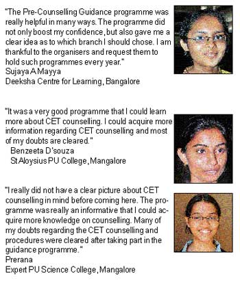 <p>Speaking after inaugurating the pre-counselling guidance for CET and COMED-K organised under the aegis of Deccan Herald and Prajavani dailies in association with Acharya Institutes at the Town Hall here on Monday, Rai said “each profession has its own dignity and significance. Similarly, each profession has its own merits and demerits too. Let students decide themselves which profession they prefer.”<br /><br />Talking about the selection of college, Rai said, “parents and students should verify properly whether the infrastructure, teaching faculty, clinical materials, academic performance and the rating of the college are upto the standards.” In India, 80 percent of the medical services are being provided by non-allopathic doctors. Students have plenty of opportunities in non-allopathic branches of medical science, he added. <br /><br />Srinivas School of Engineering Professor Ramakrishna Hegde delivering a talk on ‘Prospects of engineering disciplines’ said that there are ample opportunities in almost all the branches of engineering. The economy of most of the countries is being driven by electronics, communication, instrumentation, computer engineering and IT. Students should master the subject to contribute for the economy. <br /><br />Eduquity Career Technologies Private Limited Senior Consultant B M Amarnath said that passion, ability and personality helps one to choose the right career. “Know yourself before choosing a profession. Pick a field which matches your ability and personality.” Resource person from Acharya Institutes, Bangalore Ravi Kiran said, “everyone has ability but when you grab the ability, it becomes capability.” The Printers (Mysore) Private Limited General Manager (Circulation) Shivaramakrishna, Assistant General Manager Nandakumar, Prajavani Mangalore Bureau Chief B V Mahesh Chandra and Deccan Herald Mangalore Bureau Chief Ronald Anil Fernandes were present.<br />DH News Service<br /><br />Offer from Fr Muller Medical College<br />Fr Muller Medical College will offer seats to students, who bag 1 to 10 ranks, without charging any fees, said Medical Services Chief of Fr Muller Medical College Dr Sanjeev Rai. <br /><br />“Students can complete the course without paying a single penny as fees,” he assured.<br /><br /></p>
