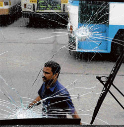 <p>Officials from the BMTC said the State-run corporation pressed some of its scheduled buses in the morning, but had to withdraw it within hours after 42 vehicles were damaged in incidents of stone pelting by unruly mobs and miscreants, in various parts of the City.<br /><br />“We sustained revenue loss to the tune of Rs 2.5 crore, a full day’s loss apart from Rs 5 lakh from damages caused by way of broken window glass panes etc.,” said officials.<br /><br />BMTC withdrew its entire fleet of Volvo premium services in the City and to the Bengaluru International Airport (BIA) as a precautionary measure. A total of 370 Vajra and 63 Vayu Vajra operate daily, apart from 5,000 buses of other categories. The Karnataka State Road Transport Corporation (KSRTC) had also withdrawn 5,000 plus of its buses from service from 6 am to 6 pm. A lone bus of KSRTC was damaged at Harihar, near Hubli.</p>