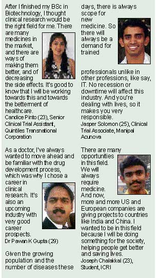 <p>It’s not just the doctor who plays a role in treating those who are sick, and help them get better. Every drug that is prescribed — even if it something as simple as an aspirin — reaches the patient only after an enormous amount of money, time, effort and manpower has been put into it to make sure that it is effective, safe and fit for human consumption. If you want to help improve medical treatment and healthcare, then clinical research could be the field for you.<br /><br />Clinical research is the branch of medicine that determines the safety and effectiveness of medication, medical devices, diagnostic products and treatment for human use. It includes the study of new drugs, devices, vaccines,and other tools used to improve healthcare and medical treatment. Most of these trials are conducted before the medicine is released into the market, and also after the launch of the product, to monitor the efficacy and side-effects.<br /><br />Since these drug trials involve the participation of human subjects, there are several scientific, medical, ethical and legal guidelines that need to be followed to make sure that the subjects participating in the trials get maximum benefit and safety.<br /><br />Market scenario<br /><br />All new vaccines, diagnostic products, medical devices, biotechnology products are considered new drugs, and have to undergo rigorous testing before they are launched. “Clinical trials are important since they help to predict the biological effects and toxicity of a new drug which cannot be directly extrapolated to humans due to species differences. The only way to know the actual effects of a drug in human beings is through trials. Well- designed trials, conducted based on sound scientific principles and standards (Good Clinical Practice), generate good quality data for interpretation and regulatory approval,” says Shiv Raman Dugal, Chairman, Institute of Clinical Research India (ICRI).<br /><br />In India now, there is a demand for researchers, with companies conducting a majority of trials here. According to J Sudhir Pai, Managing Director of the Lotus Clinical Research Academy, the Indian market for clinical trials is growing at approximately 30 per cent annually. “India’s scientific pool, improving medical infrastructure and cost competitiveness is increasing its influence and positioning in the global scenario,” he adds.<br /><br />Eligibility <br /><br />Any student who has a BSc, B Pharm, MBBS or BDS degree can sign up for an MSc in clinical research. <br /><br />Those with a degree in pharmacy, medicine, life sciences, biotechnology and bio-sciences have an advantage. Many institutes that offer courses in clinical research have screening tests and interviews to select their students. Students who complete their degrees from recognised institutes stand to earn between Rs 1.5-3 lakh as they start out. For those with a Master’s degree and relevant work experience, the starting salary is likely to be higher. The annual increments are in the range of 25-30 per cent, and there is plenty of scope for growth. “Clinical research is an industry where experience counts, thus the longer you are in this field; higher the salary you can expect,” explains Shiv Raman Dugal.<br /><br />Research associate to manager<br /><br />The most common entry-level position is that of a Clinical Research Associate (CRA). The CRA is responsible for planning and implementing all activities that are needed to monitor clinical trials, and ensure that good clinical practices are followed. The CRA also assists in preparing presentations. <br /><br />A Biostatician performs statistical programming, and design and analysis for clinical trial projects. He/she will also have to co-ordinate, provide statistical analysis, summaries and reports of studies. <br /><br />A Clinical Research Manager supervises the design and writing of protocols, case report forms and informed consent forms for clinical trials. <br /><br />There are other positions too, such as Clinical Research Coordinator, Business Develop-ment Manager, Clinical Research Investigator, Clinical Data Manager etc.<br />Students can also be placed with IT firms which are now venturing into clinical data management, medical writing and biostatistics.<br /><br />Bright prospects <br /><br />According to a recent report, the Clinical Research Industry in India is expected to touch Rs 5,000 crore by 2010, and will generate employment for 50,000 people in the next few years. <br /><br />This also is one of the few industries not affected by recession or economic slump. Many pharmaceutical and clinical research organisations are increasingly choosing countries like India to conduct their clinical trials. <br /><br />Those with a degree in clinical research have several options. But those in the industry say that the fulfil-ment is what makes them tick.<br /><br />Courses and institutes</p>.<p>There are several institutes in India which have courses in Clinical Research. <br /><br />*ICRI, which has campuses in Delhi, Bangalore, Ahmedabad, Mumbai, Hyderabad and Dehradun, offers a two-year, full-time Master’s course in Clinical Research with an MBA, MSc in Clinical Research, a one-year part time PG Diploma in Clinical Research, and a PhD in Clinical Research. The institute also has several diploma courses at the UG-level, including those for doctors and nurses.<br /><br />*Lotus Clinical Research Academy, Bangalore, in association with Birla Institute of Technology, Ranchi offers MPharm in Clinical Research and MS in Clinical Research and Pharmacovigilance. <br /><br />*The Bombay College of Pharmacy offers Bachelor’s, Master’s, and Doctoral programmes of study in Pharmaceutical Sciences. <br /><br />*Cliniminds Academy for Clinical Research Training & anagement offers various courses at the PG-level. <br /><br /></p>