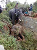 <p>Forest officials suspect the elephant was a part of the herd that raided a maize farm on the fringes of the forest bordering Veeranahosahalli and may have fallen into the ditch while returning to the forest. <br /><br />The surrounding regions including Tibetan camp, Pakshirajapura, Penjalli have seen a good maize crop this year attracting herds of elephants. The ditch had been dug up around the forest region to prevent the jumbos from straying into villages.<br /><br />When informed about the elephant, ACF Belliappa and his team arrived on the spot, even as curious villagers and tribals from Nagapura hamlets surrounded the place. Forest officials initially tried to pull the elephant using ropes. But when this did not work, Dasara elephants Abhimanya and Ganesh were summoned from Moorkal camp. <br /><br />However, this did not work too and the officials are now widening the ditch using an earth-moving machine. “We will see if the elephant can pull itself up after widening the gorge till Sunday morning.<br /><br />Our doctors have been treating the exhausted pachyderm,” an official said. A team of rangers and forest guards are deputed on the spot to ensure the safety of the elephant.</p>