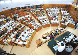 <p>Financial planning: A view of the BBMP council during the budget session on Monday. DH PhotoThat became clear on Monday as the BBMP presented a “surplus” Rs 8,497-crore budget for the 2010-11 fiscal, after a six-month delay. <br /><br />Although the BBMP could collect only Rs 821 crore from property tax, advertisement tax and trade licence fee in 2009-10, marginally better than the Rs 753 crore accrued in 2008-09, its latest budget expects to raise Rs 3,279 crore this year. <br /><br />The budget had to be “surplus” because the Karnataka Municipal Corporation Act, 1976, rules out a deficit one. The BBMP says it will ensure a surplus budget by borrowing heavily from financial institutions.<br /><br />For the ruling BJP, it was the first opportunity to present what it described as a “people-friendly” budget. That the BBMP had only Rs 424 crore in its coffers was another matter. Besides loans, the BBMP is also banking high on the grants from the State and Central governments. <br /><br />The budget, presented by chairman of the Taxation and Finance Committee PN Sadashiva, has also high revenue expectations from the Akrama-Sakrama scheme, if and when it is implemented. <br /><br />The newly adopted global information system is expected to help the BBMP identify much more taxable assets and thus meet the higher target set for this fiscal. <br /><br />There were obvious voices from the Opposition asking how the Palike would manage its expenditures if the anticipated revenues do not fill the BBMP coffers. But Sadashiva said “the government will provide us with the funds if there is a shortfall.” While no new taxes were recommended, special development charges are to be levied on high value assets and on those who erect towers and dish antennae for commercial purposes.<br /><br />Infrastructure projects for the City will get a big boost. On the agenda are 10 parking bays, a detailed project report preparation for a signal free road from Yeshwanthpur Circle to Outer Ring Road (3.5 km), a flyover from Sirsi Circle to Nayandhalli, as many as 50 underpasses, remodelling of the Kalasipalya Bus Stand, improvement of footpaths and development of approach roads to the international airport.<br /><br />In pipeline<br />* Budget banks heavily on loans, govt grants<br />* Proposes ban on usage of plastic that is less than 20 microns in Bangalore. <br />* 147 markets to be renovated, 17 lakes to be developed. <br />* Big jump expected in property tax collection with GIS mapping. <br /></p>