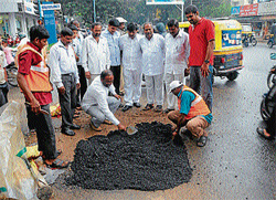 <p>Mayor Sandesh Swamy, corporators and MCC authorities inspected a demonstration of new method on Kantharaja Urs road. A Bangalore-based company Ladwa demonstrated the technology here. A 50 kg ready mix of tar could be used without any machine work or heating it and plastered on the site. It requires very less time and manpower.<br /><br /> The ready tar will set within 10 minutes even in wet conditions. The method does not require holding up traffic for more than 15 minutes on the roads where the pothole filling works was done, said Anand M N, Manager, Marketing of Ladwa. A 50 kg bag costs Rs 850, he told the Mayor and the councillors’ delegation. Mayor Sandesh Swamy told the company representative that MCC would discuss the issue in the council and standing committee before approving for buying the ready tar kits. <br /></p>
