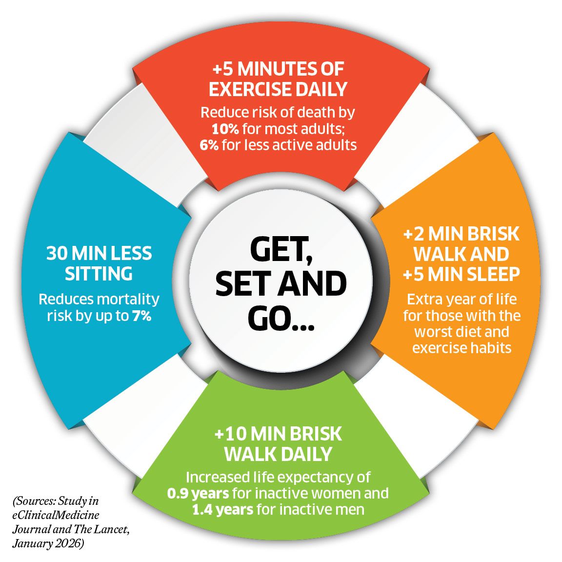 Small and realistic increases in moderate to vigorous physical activity of 5 min/day might prevent up to 6 and 10 per cent of all deaths in high-risk and general populations respectively, says a recent Lancet study. Dr Keshava R explains how to get moving and track exercise activity