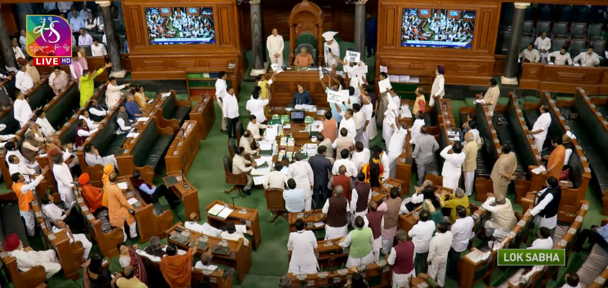 The chair read out multiple bills for consideration as the Opposition raised "Adani, Modi bhai bhai" slogan.