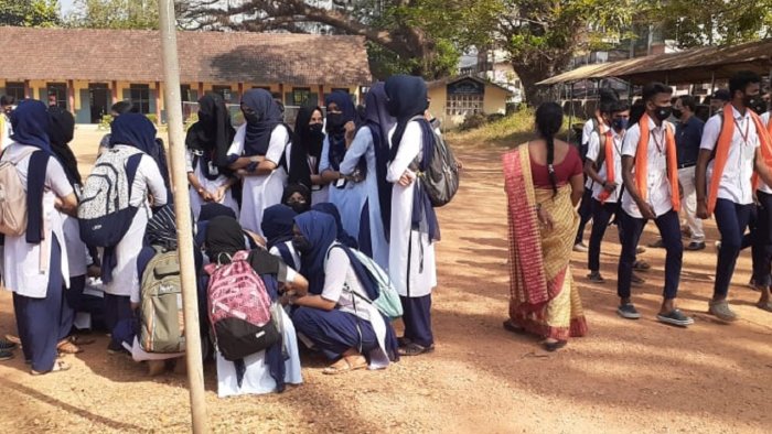 Karnataka students wear saffron shawls to colleges as hijab row escalates