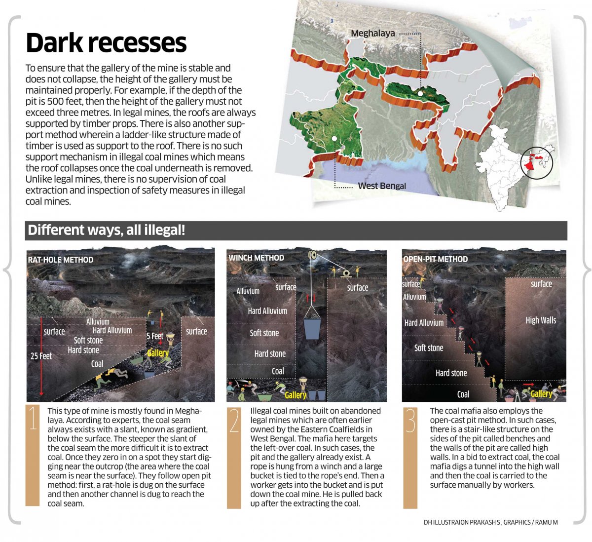 <p>Navy divers and NDRF personnel on Thursday pulled out the first body of trapped miners from the flooded coal mine in Meghalaya, 42 days after they got caught inside.</p>.<p>Official spokesperson M Susngi said a six-member team of rescuers, comprising three from Navy, two from NDRF and a government hospital staff went inside the shaft with an inflatable boat, a body bag and other equipment and pulled out the body around 3 pm from 170-feet deep water.</p>.<p>A total of 15 miners got trapped in the 350-feet deep mine in East Jaintia Hills district on December 13 after they entered it to extract coal. The miners dug horizontal holes inside the vertical shaft and crawled inside to extract coal from the illegal mine. They got trapped after water entered from nearby shafts, which probably are interconnected underneath. </p>.<p>The rescuers, however, did not say whether it was the same body which was detected on January 17 and slipped from the Navy's underwater remotely operated vehicle.</p>.<p>The body was handed over to Saipung police station and a post-mortem was conducted.</p>.<p>The shaft is 355 feet deep vertically and then there is a 210 feet long horizontal rat hole, which the miners had dug to extract coal, officials said. Coal mining is still on in Meghalaya despite a ban by National Green Tribunal in 2014. <br /> <br />The body has not yet been identified. </p>.<p><br /><strong>Disengaged</strong><br /><br />The navy divers on January 17 had detected a body and pulled it up to 100 feet. A status report to the Supreme Court about the multi-agency operation on Monday said that navy divers were asked to shift from the main shaft as the skull, left wrist and the legs from the knee had already disengaged from the body.<br /><br />Family members of at least four victims requested the district administration to pull out the bodies for last rites.<br /><br />Meanwhile, efforts to pump out water from the flooded mine in search of rest of the bodies, continued even on Thursday.</p>.<p><strong>ALSO READ: <a href="https://www.deccanherald.com/national/poverty-forces-rat-hole-miners-711610.html" target="_blank">Poverty forces ‘rat-hole’ miners into death traps</a></strong><br /> <strong><a href="https://www.deccanherald.com/national/rat-hole-mining-dynamics-711244.html" target="_blank">‘</a></strong><strong><a href="https://www.deccanherald.com/national/rat-hole-mining-dynamics-711244.html" target="_blank">Rat hole</a></strong><strong><a href="https://www.deccanherald.com/national/rat-hole-mining-dynamics-711244.html" target="_blank">’ mining dynamics puzzle top rescue agencies</a></strong></p>