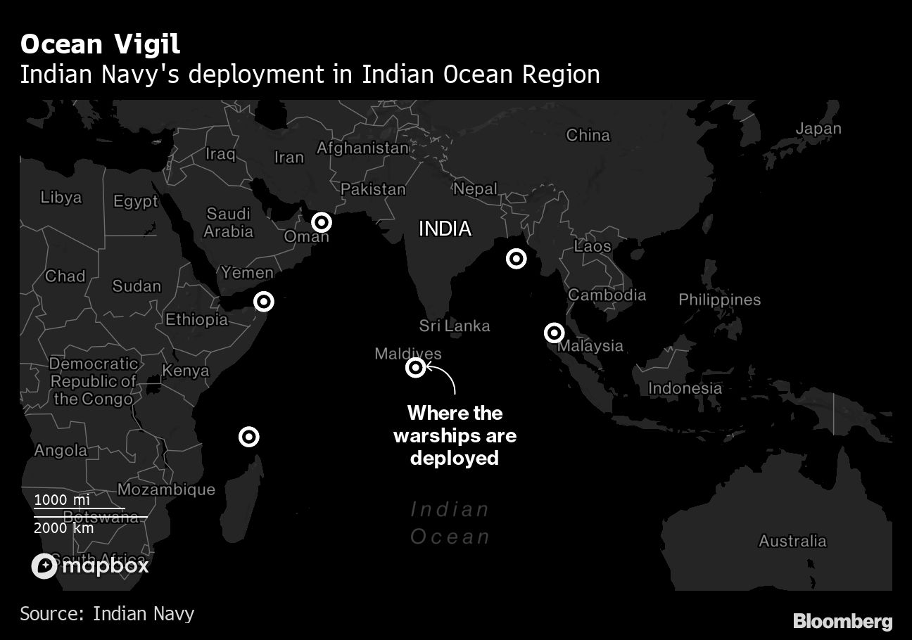 <p><em><strong>By Sudhi Ranjan Sen,</strong></em></p>.<p>India is carrying out more warship patrols than ever before as concerns grow about the country’s ability to remain dominant in the Indian Ocean as China’s naval power quickly increases.</p>.<p>The waters off India haven’t seen this many naval vessels together since World War II as both China and Western allies deploy more warships in the area, according to senior Indian naval officials familiar with the matter. They estimated about 125 foreign naval vessels were in the Indian Ocean at any given time, roughly three times the number deployed in the wake of the Sept. 11 terrorist attacks when the US invaded Afghanistan. </p>.<p>While Indian officials are confident they can manage the threat for now, a lack of funding threatens the country’s ability to keep pace with China and other nations. Most Indian submarines critical to controlling the oceans are about two decades old, and plans to increase the warship fleet to 200 -- including a third aircraft carrier -- keep getting delayed.</p>.<p><strong>Also Read | <a href="https://www.deccanherald.com/national/west/paschim-lehar-indian-navys-joint-maritime-exercise-concludes-off-west-coast-1074878.html" target="_blank">Paschim Lehar: Indian Navy's joint maritime exercise concludes off west-coast</a></strong></p>.<p>India now has about 130 warships, roughly a third of China’s naval fleet comprising 350 ships and submarines -- the largest in the world. Despite that, last year the navy saw the biggest gap among India’s three military services between requested and actual funds, prompting a parliamentary panel to ask the government to stop making further reductions.</p>.<p>The navy’s budget will be in focus on Feb. 1, when Prime Minister Narendra Modi’s government presents its annual spending plan in parliament. In the last five years, the shortfall between what the Indian Navy requested and what it got ranged from 5 per cent to 41 per cent, the panel of lawmakers said in a 2020 report to the government. In the latest report submitted last month, they said the navy’s allocation was “less than half the amount” it wanted.</p>.<p>Defense Ministry spokesman Bharat Bhushan Babu and Indian Navy spokesperson Commander Vivek Madhwal didn’t immediately respond to requests for comment.</p>.<p>“Over time as the region gets more militarized, tension in the area is bound to increase,” said Anit Mukherjee, associate professor at the S. Rajaratnam School of International Studies who wrote a book on India’s military. “The solution for India is to develop the navy if it wants to address its growing diplomatic and strategic needs.”</p>.<p>Chinese warships have been present in the Indian Ocean since 2008, and India is constantly watching three to eight of them that are continuously on patrol, Chief of Naval Staff Admiral R. Hari Kumar told reporters in December. “I want to assure you the Indian Navy is confident of defending India’s maritime interests,” he said.</p>.<p>India has permanently deployed warships at five choke points in the Indian Ocean, stretching from the Gulf of Aden in the west to the Malacca Strait in the east. The waters carry some of 40 per cent of the world’s oil from fossil-fuel producers in the Middle East to some of Asia’s biggest economies. </p>.<p>Last year the Indian Navy carried out an all-time high of 50 joint exercises with friendly navies, including one with Japanese warships around the Malacca Strait, said a senior naval official. </p>.<p>Still, India has been cautious to avoid antagonizing Beijing as the two countries battle along their contested Himalayan borders. Modi’s government has turned down requests from friendly navies to jointly patrol the South China Sea, another naval official said. </p>.<p>India’s navy has sought to demonstrate its reach with humanitarian missions. In 2015, more than 26 countries, including the US, turned to India to help evacuate their citizens when civil war in Yemen intensified. Half a dozen Indian warships were able to rescue 4,000 Indian citizens as well as 1,200 foreigners before Port Aden was bombarded. </p>.<p>In the last two years, the naval ships have sailed 40,000 nautical miles -- or twice around the earth -- carrying food, medicines and weapons to Indian Ocean countries. On Dec. 26, an Indian warship sailed into Mozambique for the first time carrying weapons and humanitarian aid. </p>.<p>Overall leaders in India’s capital have become “more aligned with the Indian Navy’s view of the country’s interest in the maritime domain,” said Nilanthi Samaranayake, a director of the Strategic and Policy Analysis Program at CNA, a US-based research organization. “Especially if it relates to the safety of Indian citizens working overseas and remittances to the national economy.”</p>.<p><strong>Check out DH's latest videos:</strong></p>