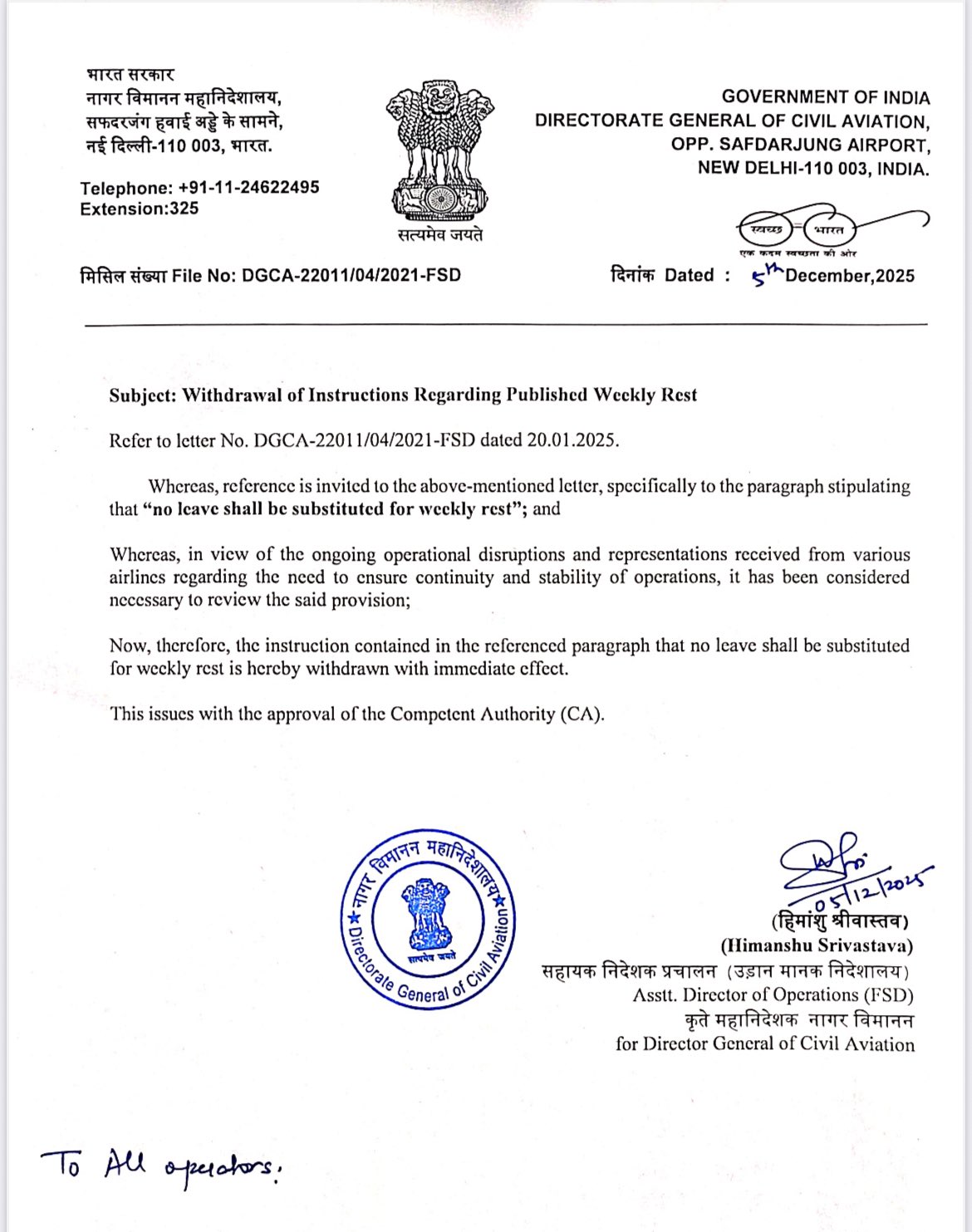 IndiGo Crisis LIVE Updates| DGCA withdraws weekly rest norm for crew members
