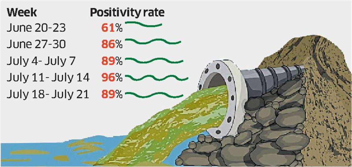 <p>Bengaluru’s Precision Health initiative, a wastewater surveillance programme piloted by the COVIDActionCollab (CAC) to detect early signs of the disease’s outbreak, has shown increased positivity across the city.</p>.<p>While the positivity rate was at 61 per cent for the week ending June 23, it increased to 89 per cent for the week ending July 21.</p>.<p>Recent results showed that 27 out of 28 samples collected from canals and sewage treatment plants across the city reported the virus’ presence.</p>.<p>“Based on the results, sites in Bengaluru that are positive indicate the presence of an active virus but undiagnosed cases or cases no longer infectious but are still shedding the virus. There is no clear indication for the sudden increase in cases, though it is suspected that the transmissibility of the sub-variants of Omicron could be behind this,” explained Dr Angela Chaudhuri, who is spearheading the Precision Health Covid Surveillance initiative.</p>.<p>Dr Bhaskar Rajkumar, who works with the Covid war room at the BBMP, said the trend was similar during the third wave. </p>.<p>“Wastewater surveillance acts as an early sign. In the next one week, these positive areas will start reporting cases even in the RT-PCR tests,” he said.</p>.<p>In the wake of the revelations, the BBMP ramped up surveillance in the areas.</p>.<p>“We have increased surveillance and testing in the hotspots identified through wastewater reports,” Bruhat Bengaluru Mahanagara Palike (BBMP) Special Commissioner (Health) Dr Trilok Chandra K V said.</p>.<p>Dr Angela urged those residing close to the hotspots to follow all safety procedures like wearing face masks always, avoid crowded places, and monitor symptoms<br />regularly.</p>.<p class="CrossHead"><strong>‘Nothing worrisome’</strong></p>.<p>Another senior BBMP official said the trend is nothing to be alarmed about.</p>.<p>“Though the analysis gives a warning sign, considering that many might not get themselves tested and the wastewater prevalence may catch such incidents, there is nothing worrisome.</p>.<p>The trend is similar to the positive cases we are detecting through RT-PCR tests. Since hospitalisation is still low, the situation is under control,” the senior official said.</p>