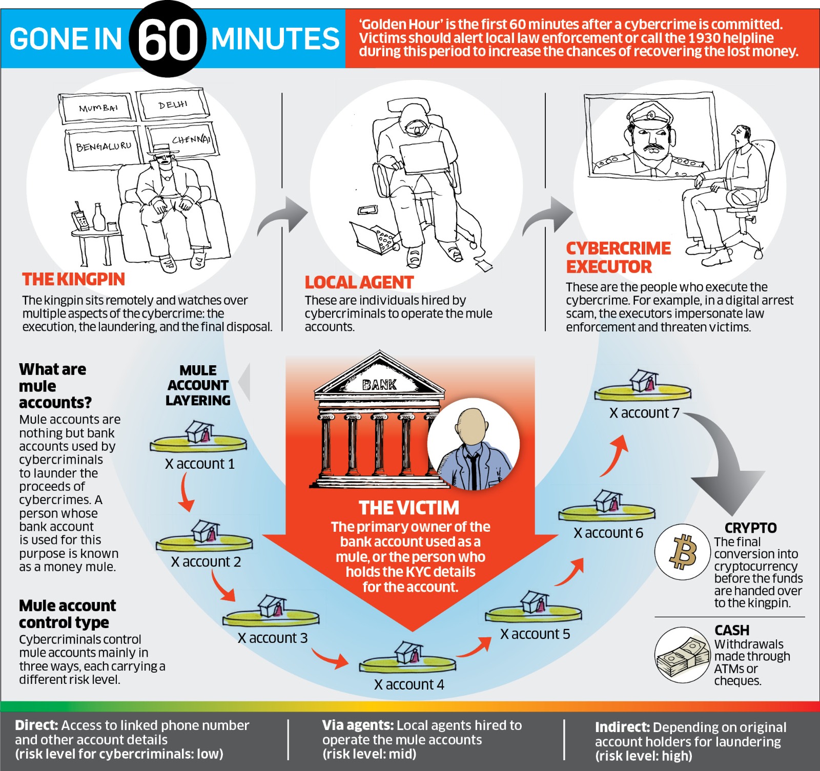 <p>Bengaluru: A 19-year-old engineering student’s life in north Bengaluru turned into a nightmare after he learnt that the bank account and associated credentials and details shared with his friend were misused by cybercriminals to launder Rs 7 crore of crime proceeds. </p>.<p>This is not an isolated case. </p>.<p>At least after 2023, cybercrimes in Bengaluru rose sharply. The following year, cybercrime victims in the state capital lost Rs 1,995 crore, the largest sum lost to date. At the same time, cybercrime investigators trying to trace the money trail found a crucial cog in the cybercrime wheel: mule account networks. </p>.<p>According to sources in Karnataka’s Cyber Command Centre (CCC), this is a well-oiled machine spread across the state. In many cases, cybercriminals abroad handle these networks, while in other cases, it is the local agents. </p>.Karnataka cyber command arrests 68 ‘mule herders’, uncovers Rs 85 crore scam network.<p>“In the case of the 19-year-old, his bank account was unwillingly used. But in some cases, people knowingly hand over their KYC details to local agents or ‘mule account herders’, who pay them a measly sum or a commission of 5-10% based on the transaction and open multiple accounts using those KYC details,” says a senior Karnataka police officer. </p>.<p>Once set up, these accounts are either sold or rented online: in many cases, the sales happen through word of mouth. These accounts are also sold on online marketplaces – both on the surface web and the dark web — to cybercriminals who will buy the whole set: the bank account, the ATM cards, passbooks, cheque books, net banking credentials, linked SIM cards, etc. </p>.<p>This will enable the cybercriminals to have full control over the account, while investigators who dig through them will find they are actually registered in the name of some random person in some remote village or town.</p>.<p>Investigators say that these networks have risen in a sophisticated manner for new-age modus operandi like digital arrest and investment frauds, also known as “pig butchering” scams, leading to each of these crimes having more than five or 10 layers in the laundering process. </p>.<p><strong>Layered transfers</strong></p>.<p>Once the network is up and running with hundreds of mule accounts, the crime proceeds are layered by systematically funnelling them through these multiple bank accounts. They are then handled by “mule account handlers/ operators” appointed by the cybercriminals for a commission and, in some cases, as a work-from-home opportunity. </p>.<p>These accounts are linked to shell companies or small businesses, many of which dissolve shortly after the laundering process. The proceeds can also flow into online money-based games and task-based fraud, disguising the stolen money as genuine payouts. </p>.<p>In the final stage, after passing through several of these layers, the crime proceeds are converted into cryptocurrency, withdrawn as cash via ATMs or cheque, used to purchase luxury assets, etc. Majorly, the end is cryptocurrency before it is handed over to the kingpins in China and Southeast Asia, cybercrime investigations have revealed. </p>.<p><strong>Systematic effort</strong></p>.<p>Cyber Command sources believe a concentrated effort is required to systematically dismantle these networks. </p>.<p>“When cybercrime cases – those damaging financially – blew up, the then approach was only recovering the money, leading to the case dying. In some cases, maybe 10%, some more investigation was done, and some local agents or foot soldiers were picked up as suspects,” says a senior cybercrime investigator in Bengaluru. </p>.<p>“After the Cyber Command Centre was established, the approach has changed to dismantling the mule account networks. Once the network is dismantled, the cybercriminals will have no other way to park, transmit and launder the crime proceeds. If the retailer or the herder of these mule accounts is hit, it will also affect the cybercriminals in cahoots with them currently and prevent fraud in the future. This is the main aim of the recent drive to dismantle mule accounts in Karnataka by the Cyber Command Centre.”</p>.<p>The investigators may also take a different approach towards the owners or the KYC holders of these mule accounts. </p>.<p>“Technically, they are complicit. But we need to look at the practicality. There can be hundred mule account owners in a single fraud, and thousands of cases are registered every year. Is it better to make them as accused, burdening the courts with prolonged trials, or make them as witnesses against the main accused? It will have to be looked at by the police investigator and those overseeing the specific cases,” opined a cybercrime investigator in Bengaluru.</p>
